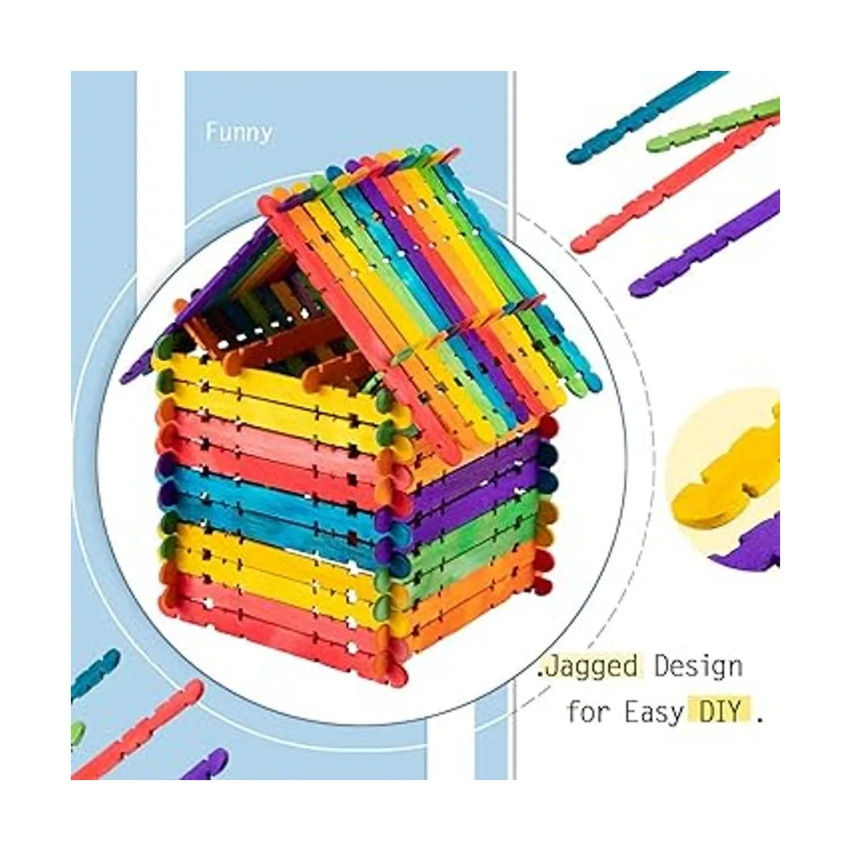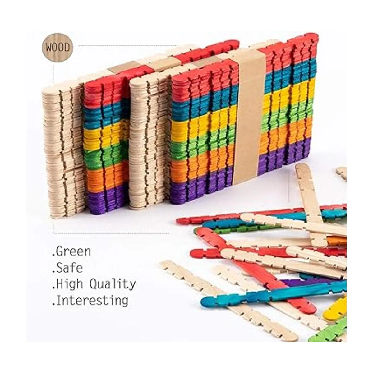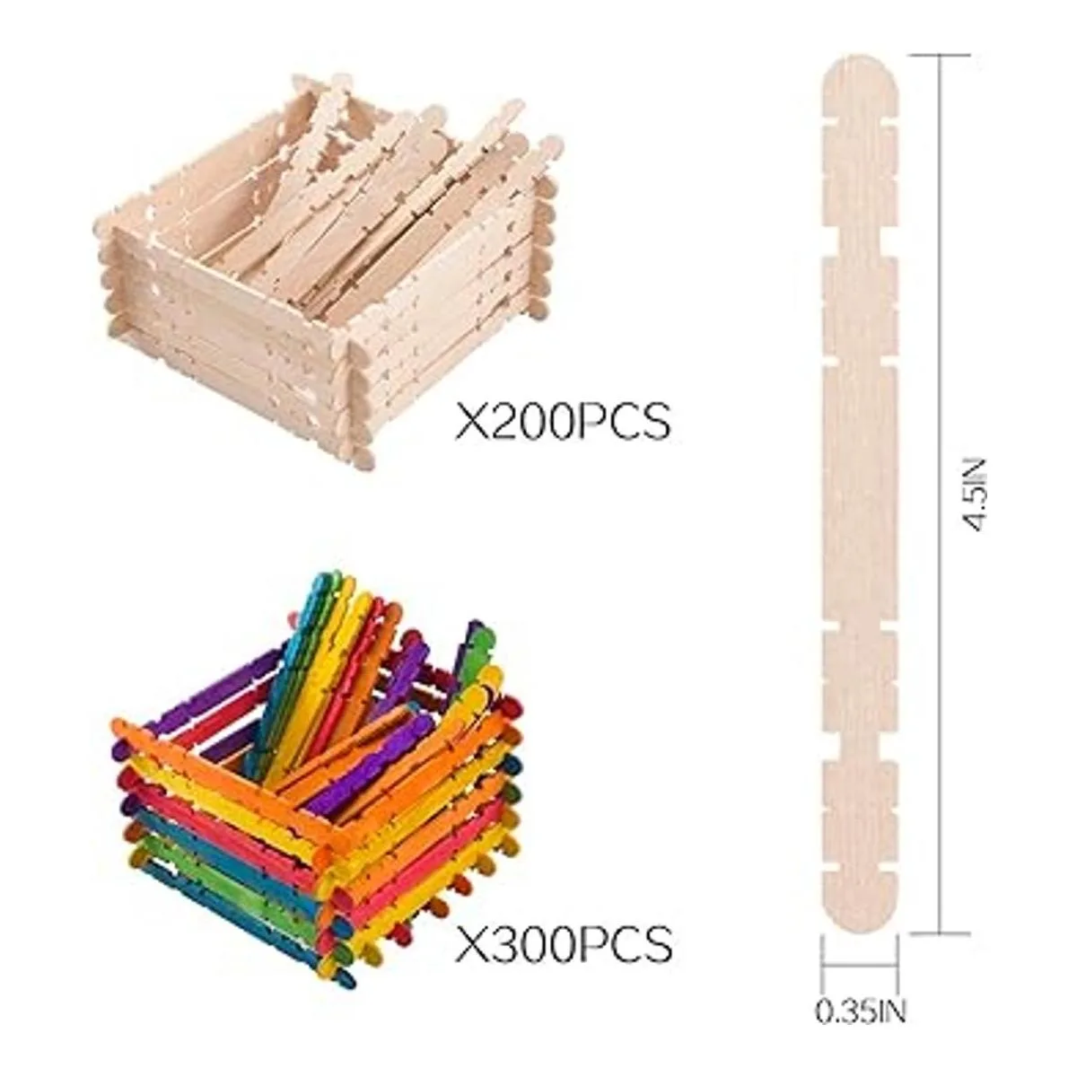 Alphatool 500 palitos coloridos de madera de dientes de sierra, varios colores y palitos de madera natural, palitos de paletas de hielo jumbo a granel para proyectos de manualidades, diseños creativos en el aula 4.5 pulgadas