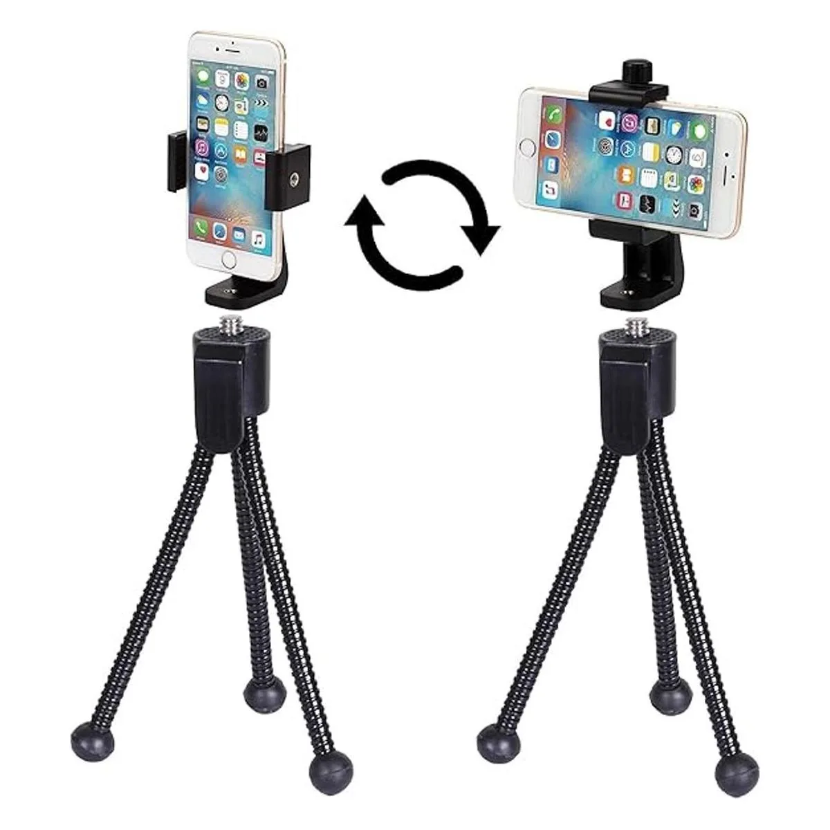 Alphx Juego de adaptador universal para teléfono celular, trípode, compatible con iPhone, Samsung, y todos los teléfonos, gira vertical y horizontal con abrazadera ajustable, incluye mini trípode