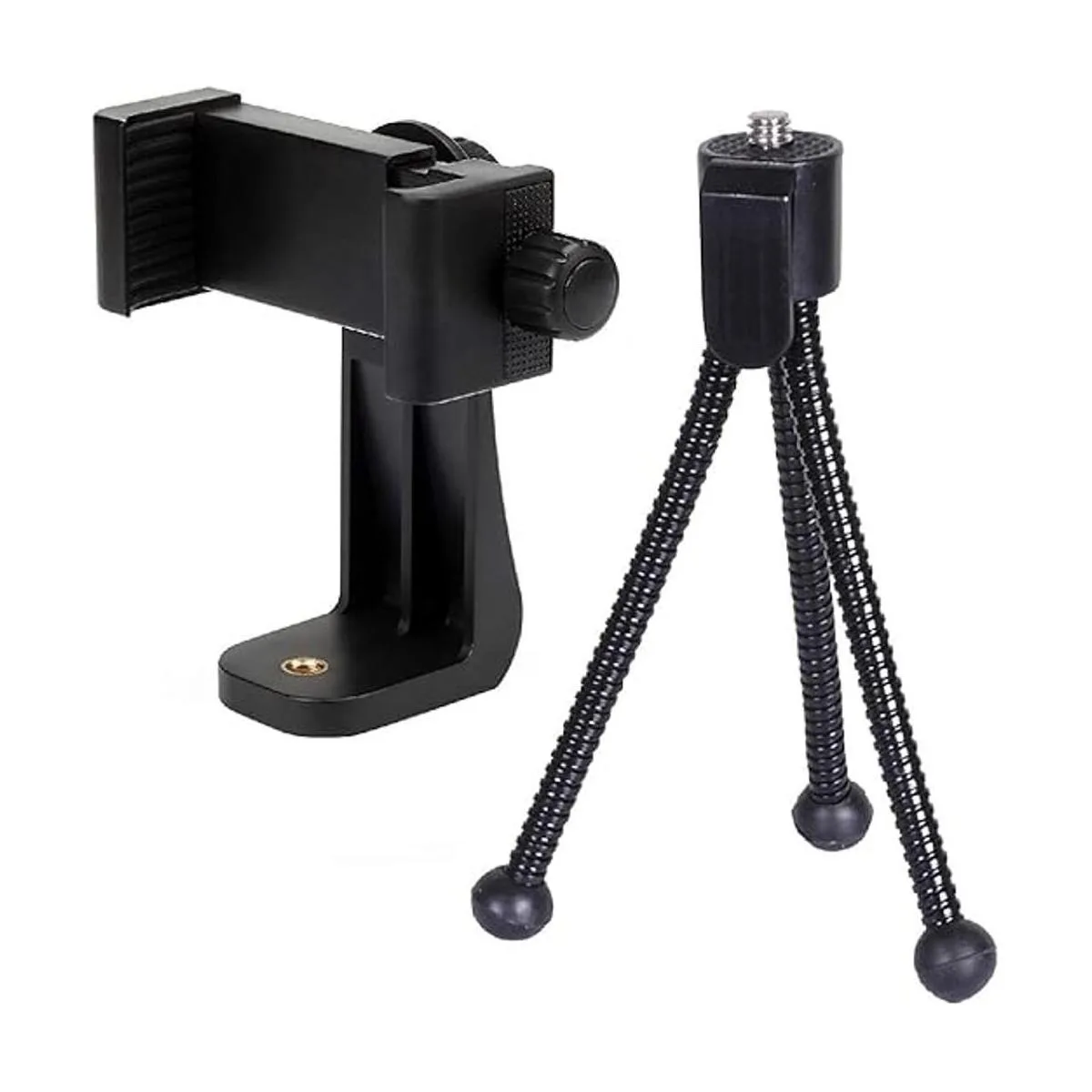 sostiene cualquier smartphone de forma segura a cualquier trípode estándar, monopié o palo selfie incluso con una funda de teléfono