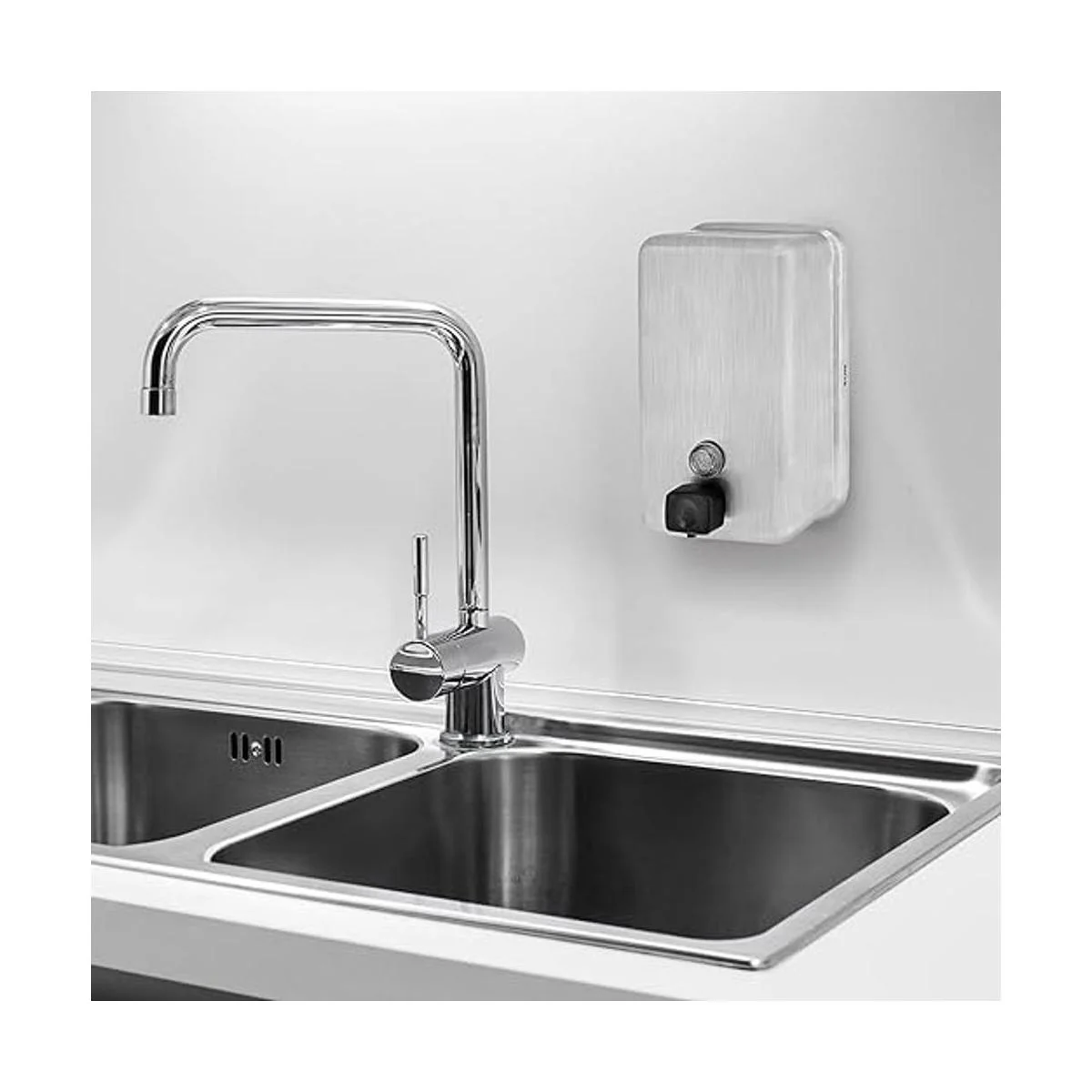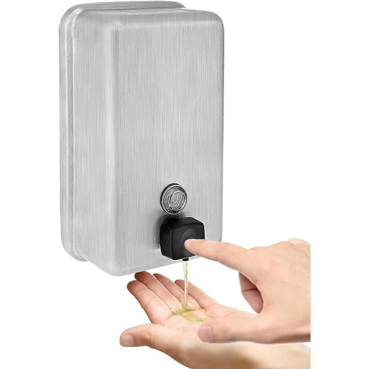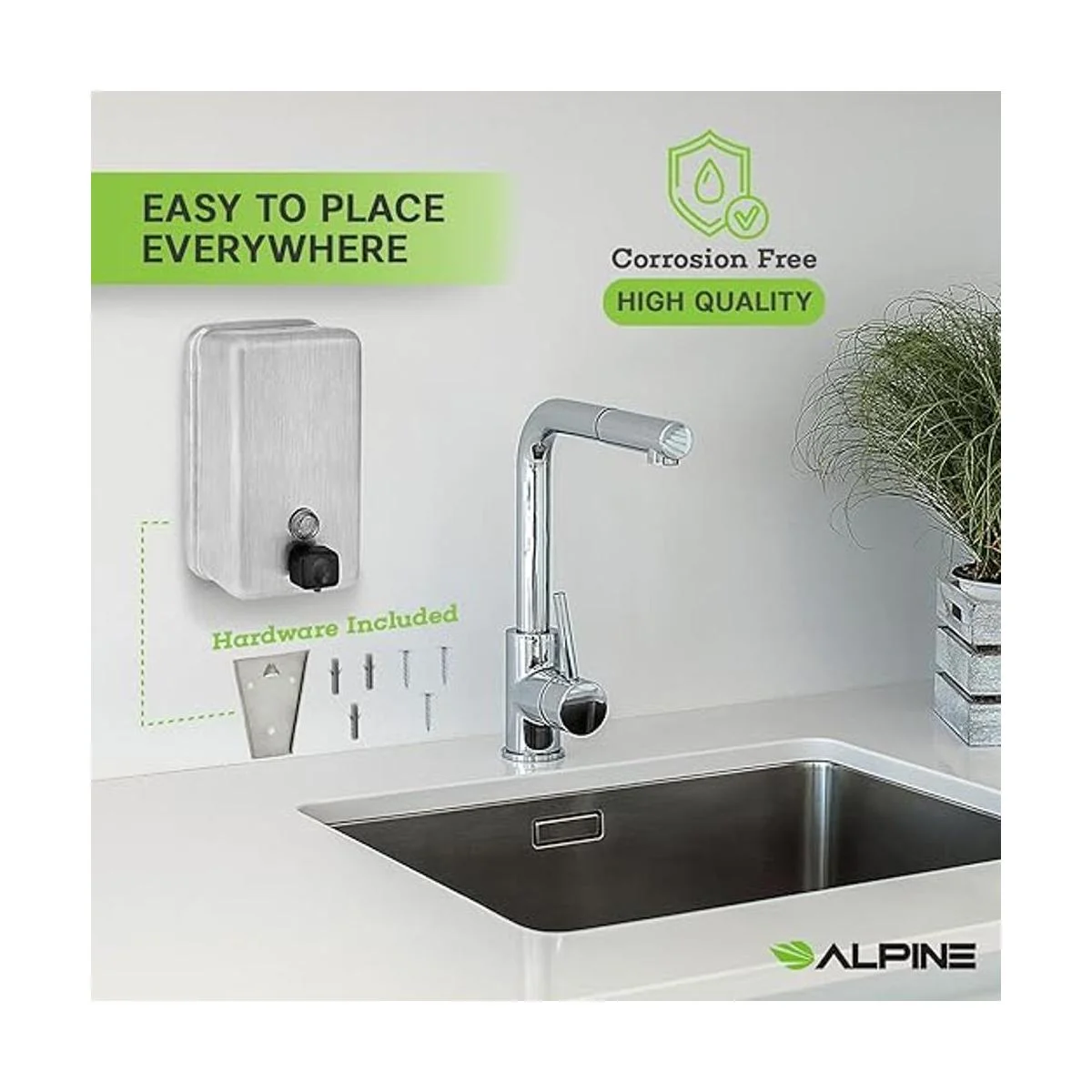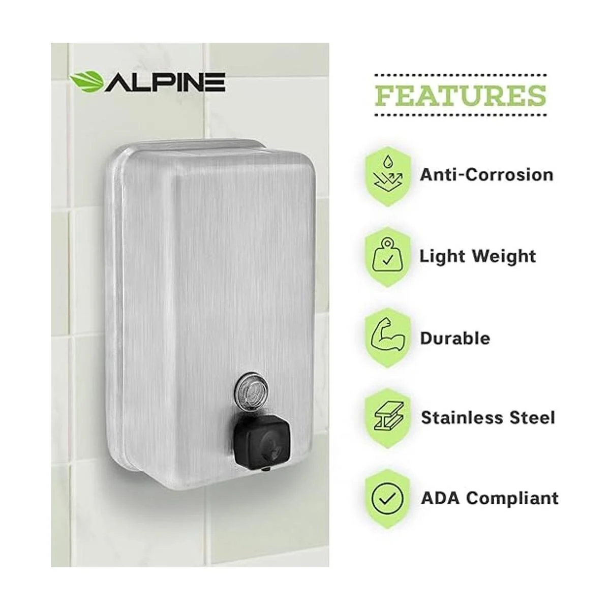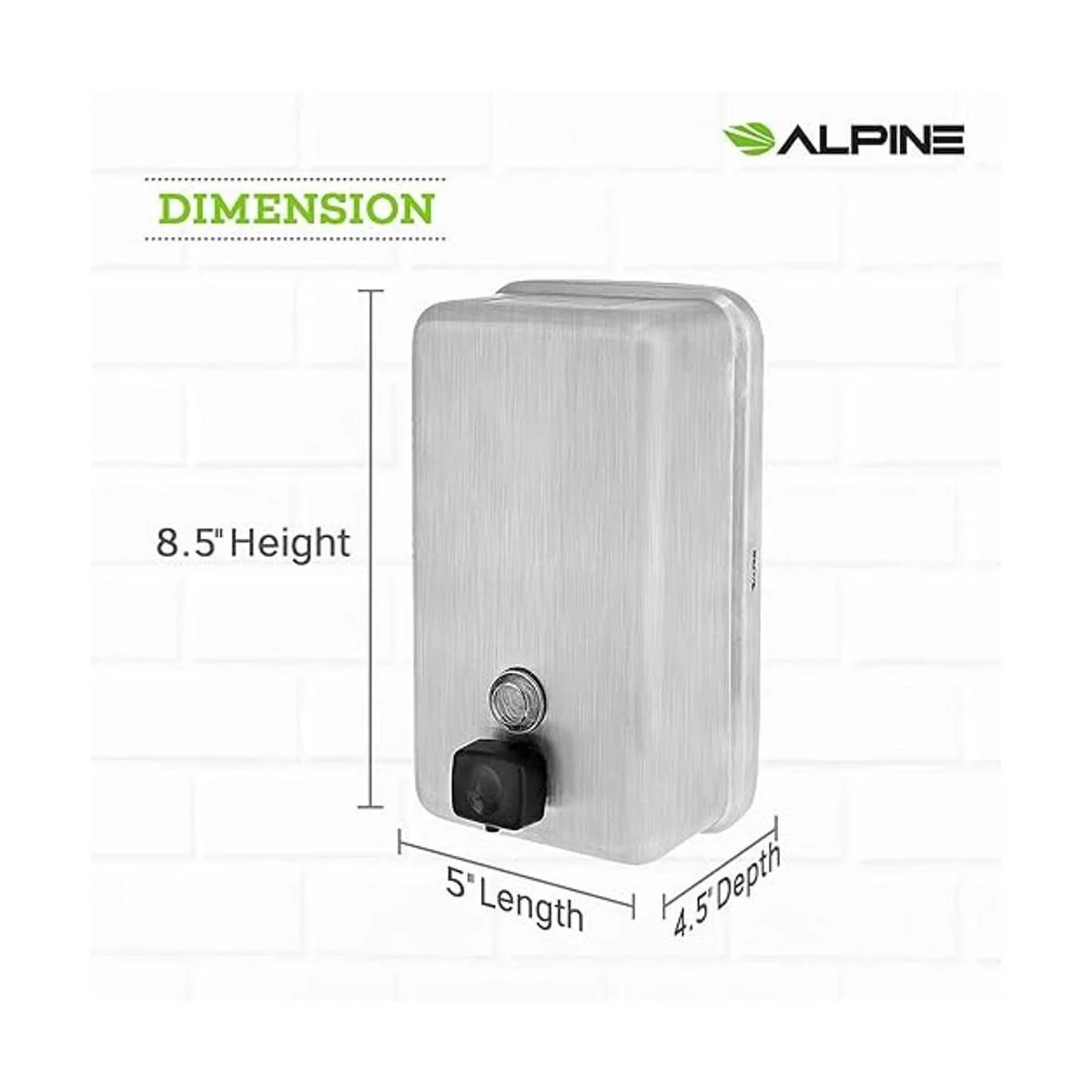 Alpine Dispenser de jabón líquido manual, amurado, de acero inoxidable, 40 onzas de capacidad., Vertical, Acero inoxidable, 1