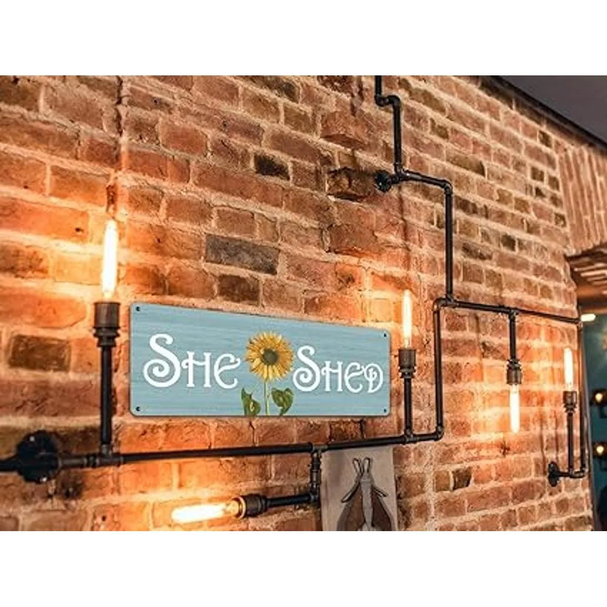 ALREAR She Shed Decor Letrero de pared con girasoles para cocina del hogar, jardín, cueva de mujer, regalo para novia, damas, letreros de metal de estaño, 15.7 x 5.9 in