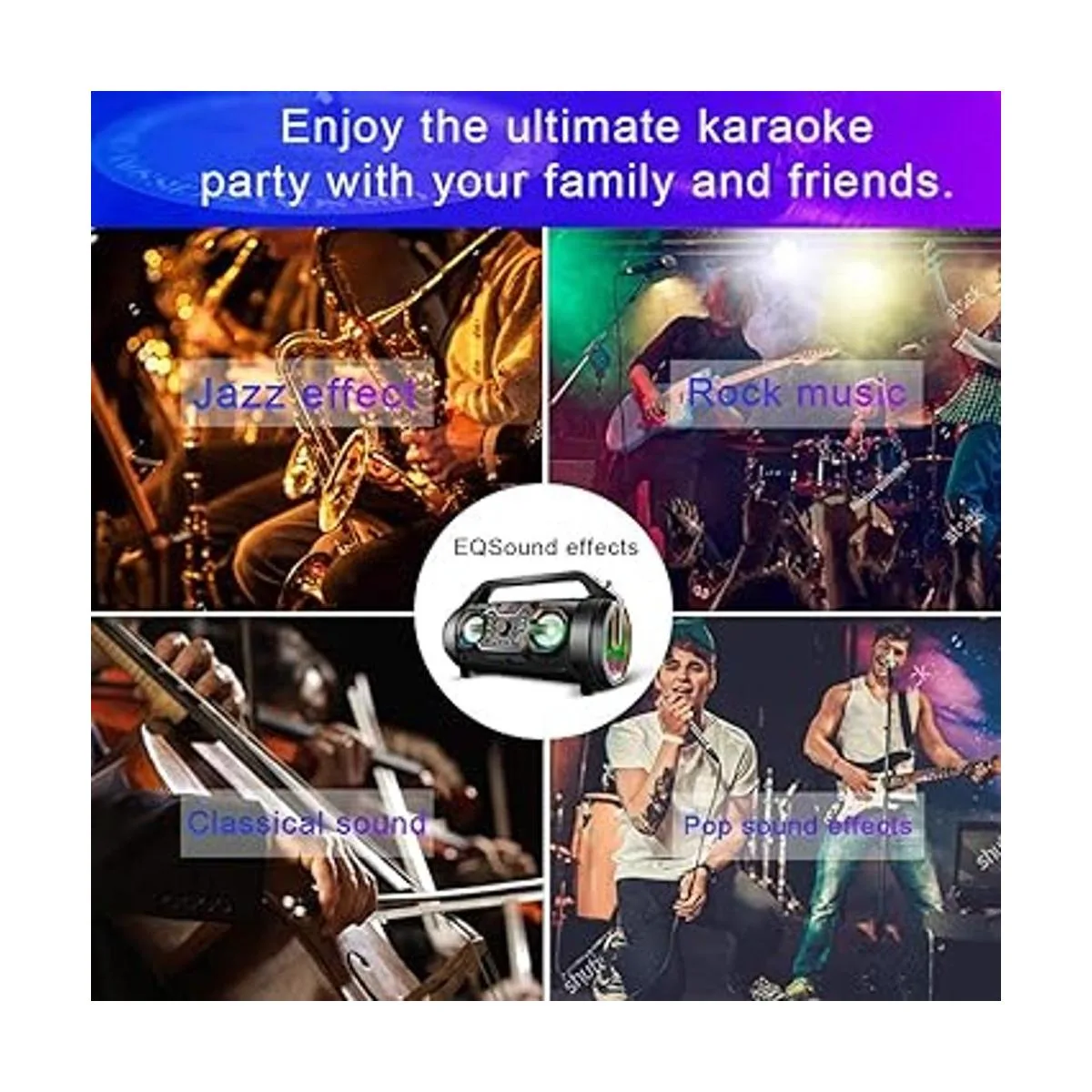 Altavoz inalámbrico para fiestas: luces coloridas y efectos de sonido de ecualización: los altavoces Bluetooth con luces coloridas pueden dar a tu fiesta un ambiente emocionante, adecuado para el hogar, gimnasio, patio, camping, piscina, playa. Hay una entrada de micrófono en el altavoz. Si tienes un micrófono, también puedes cantar tus canciones favoritas. El altavoz tiene efectos de sonido de ecualización, como efecto de música jazz, efecto de música rock, efecto de música clásica, efecto de sonido pop y mucho más.