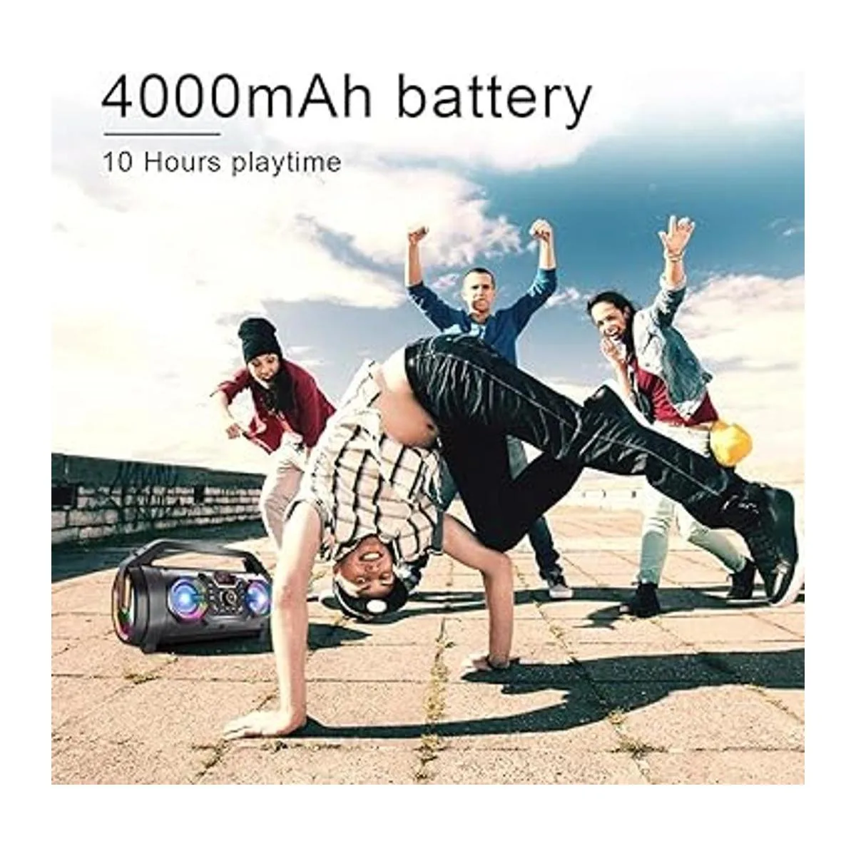 Altavoces Bluetooth portátiles: transporte cómodo y reproducción prolongada: el altavoz Bluetooth A66 tiene una batería de litio recargable integrada de 4000 mAh, que puede reproducir continuamente durante 10 horas cuando está completamente cargada. Disfruta de la música en tu hogar, patio trasero y fiesta. Asas cómodas y correa de hombro extraíble, puedes llevar el altavoz a cualquier lugar.