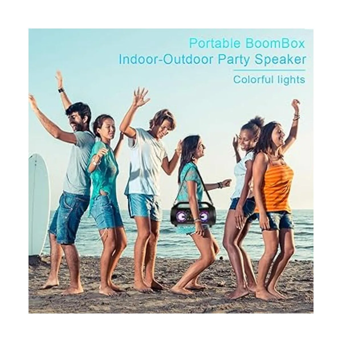 Altavoces Bluetooth, boombox Bluetooth portátil de 30 W con subwoofer, radio FM, luces coloridas RGB, ecualizador, sonido estéreo, graves en auge, altavoz inalámbrico para exteriores de 10 horas para el hogar, fiesta, campamento, viajes