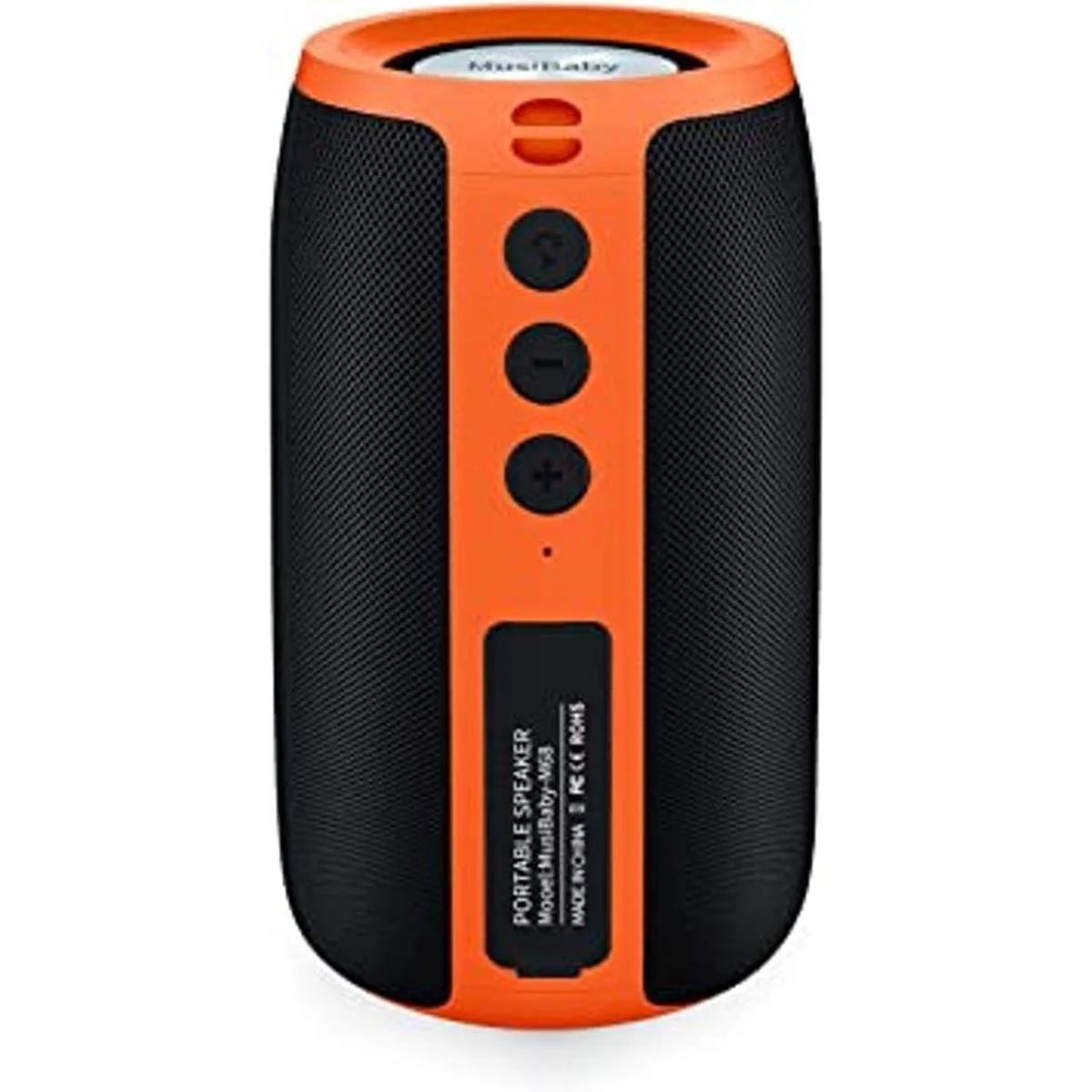 Altavoz Bluetooth, Altavoces Bluetooth portátiles MusiBaby, portátil, impermeable, altavoz inalámbrico con fuerte Stero y graves en auge, doble emparejamiento, Bluetooth 5.0, tiempo de reproducción 24 horas para el hogar, fiesta naranja
