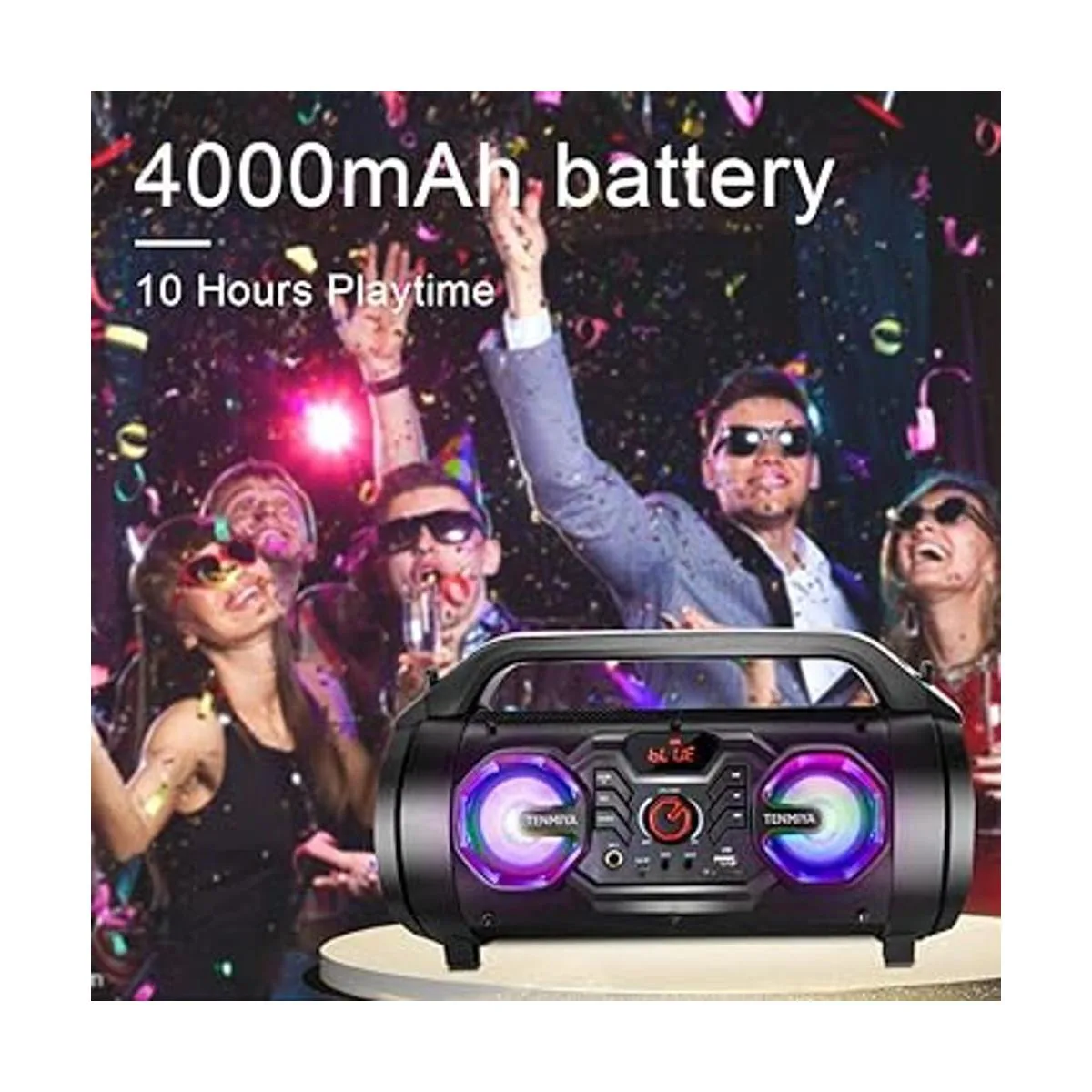 Altavoz Bluetooth portátil con subwoofer, altavoces inalámbricos con graves en auge, radio FM, luces RGB, ecualizador, sonido estéreo, tiempo de reproducción de 10 horas, altavoz fuerte de 30 W para el hogar, al aire libre, fiesta, campamento, viajes