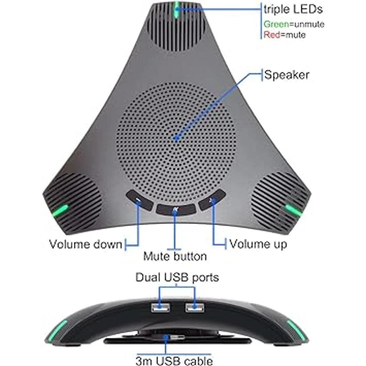 Configuración y uso con facilidad: USB plug and play, con cable de 9.8 ft de largo, se conecta a tu computadora sin necesidad de instalar controladores. La conexión por cable USB es estable. Silencia o dessilencia rápidamente el micrófono de conferencia con el botón de silencio físico