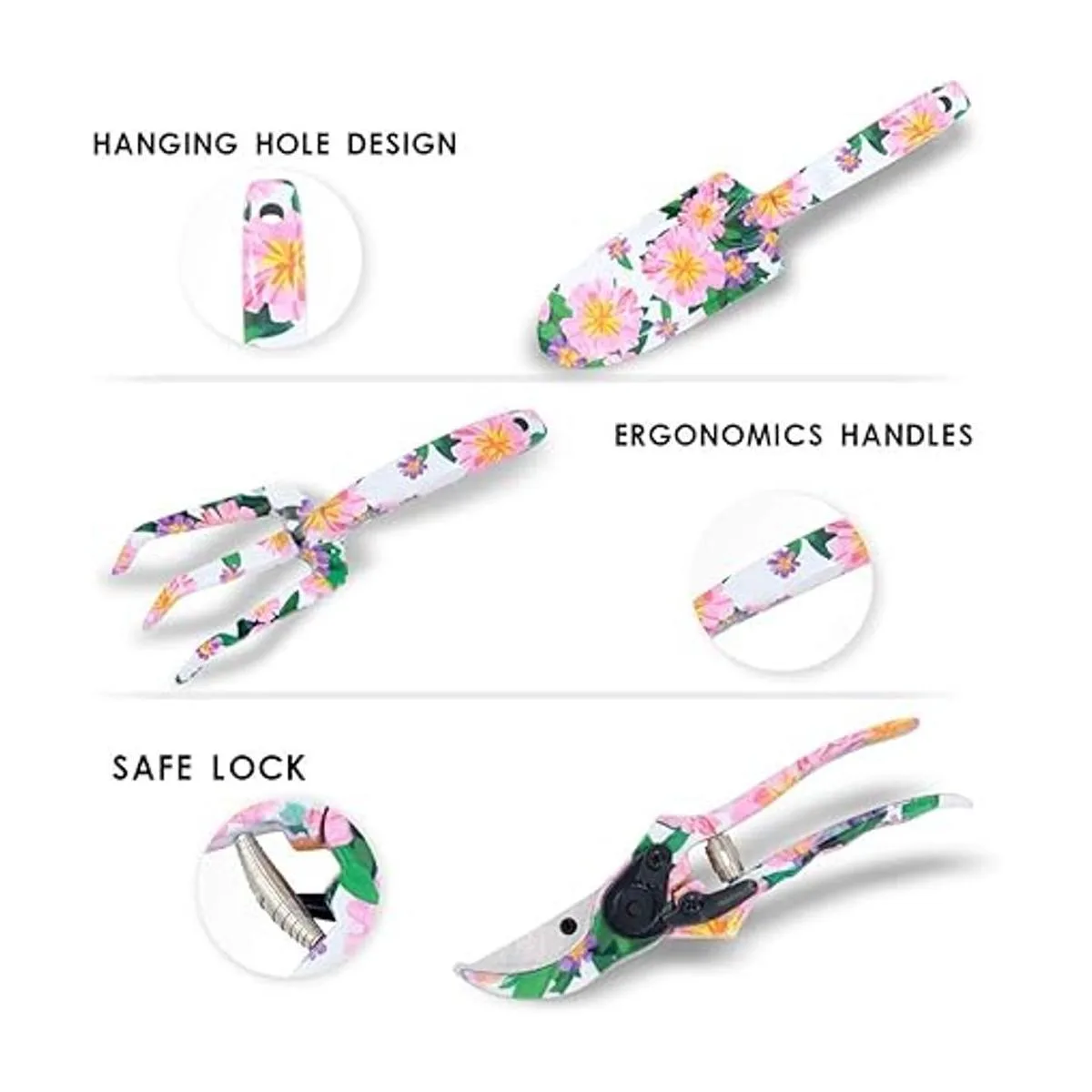 Altdorff Herramientas de jardinería para mujeres, juego de herramientas de jardín florales incluye paleta de aluminio, cultivador de manos, podadora y bolsa de jardín, regalos de jardín para mamá