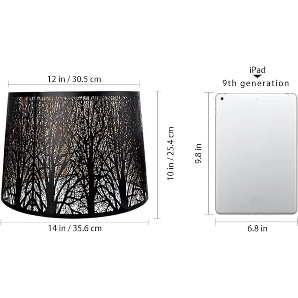 Alucset Persianas de lámpara grandes de metal, modernas y modernas con patrón de árboles para lámpara de mesa y luz de pie, 12 x 14 x 10 pulgadas, araña negrodorado