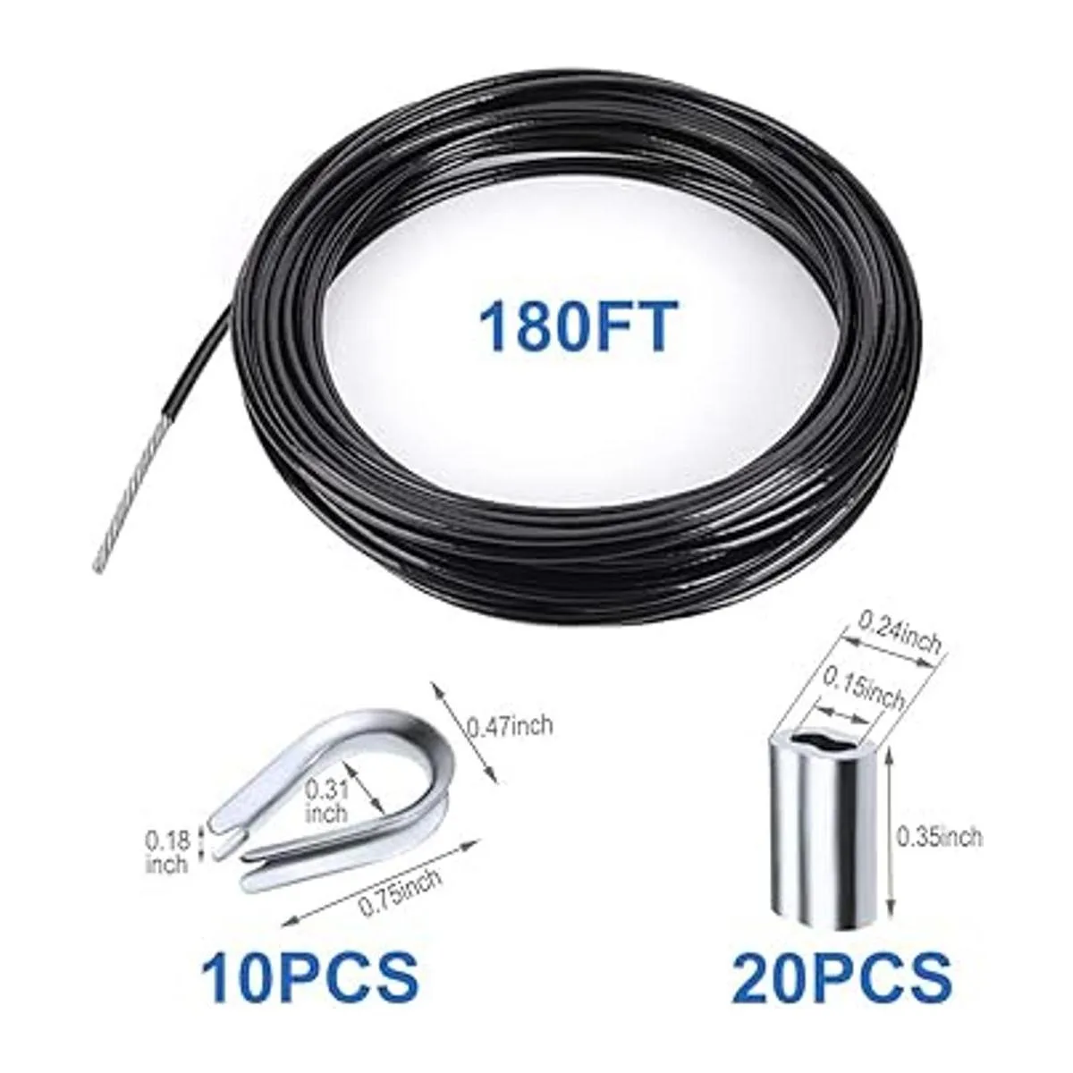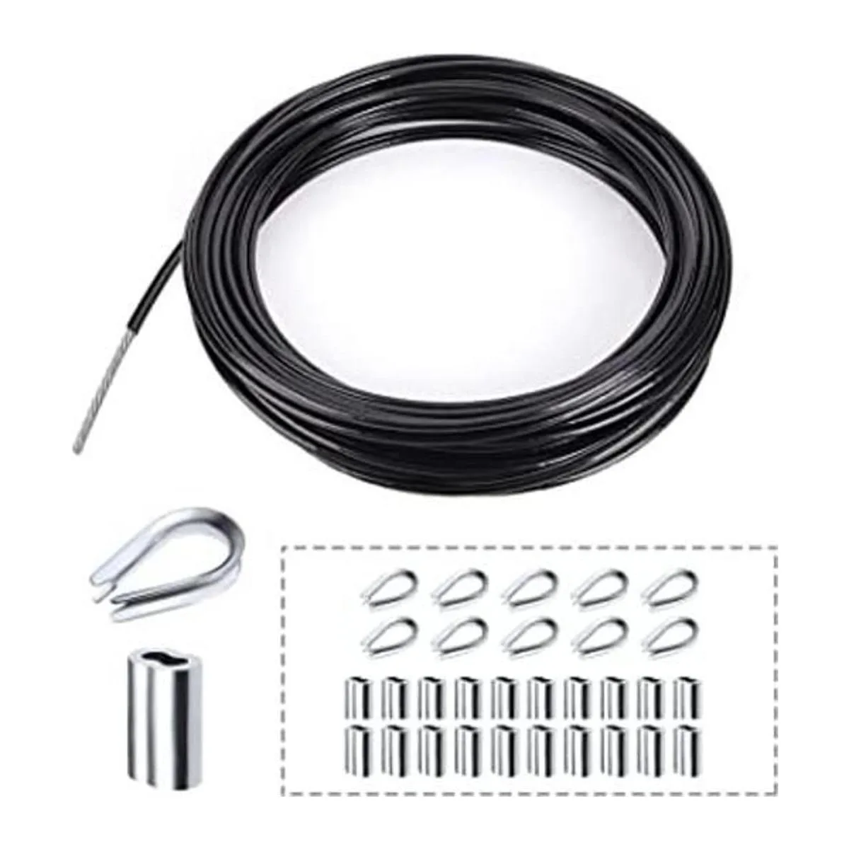 Juego completo: cuerda de alambre de acero inoxidable de 180 pies, 20 piezas de funda de bucle de engaste, 10 piezas de dedal.