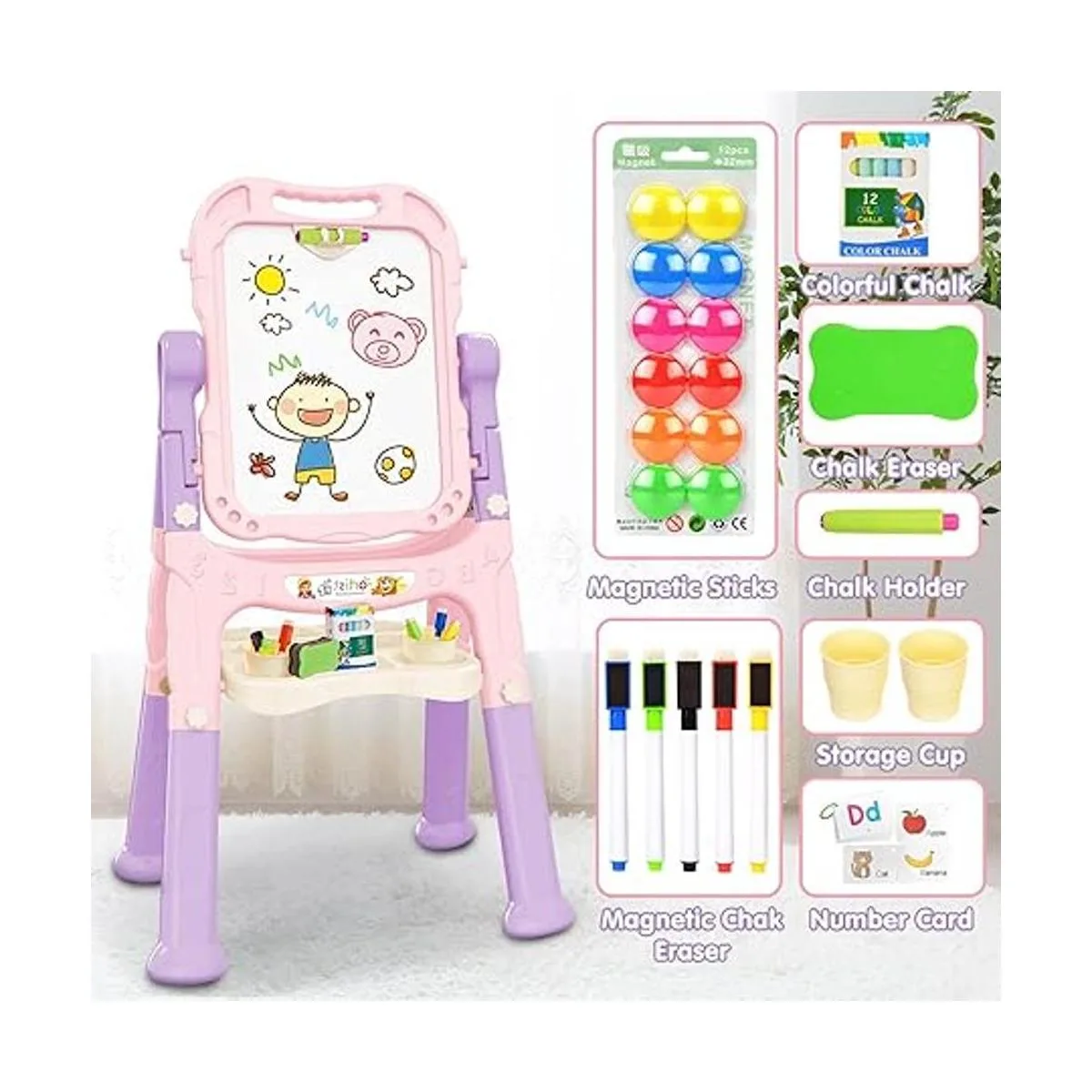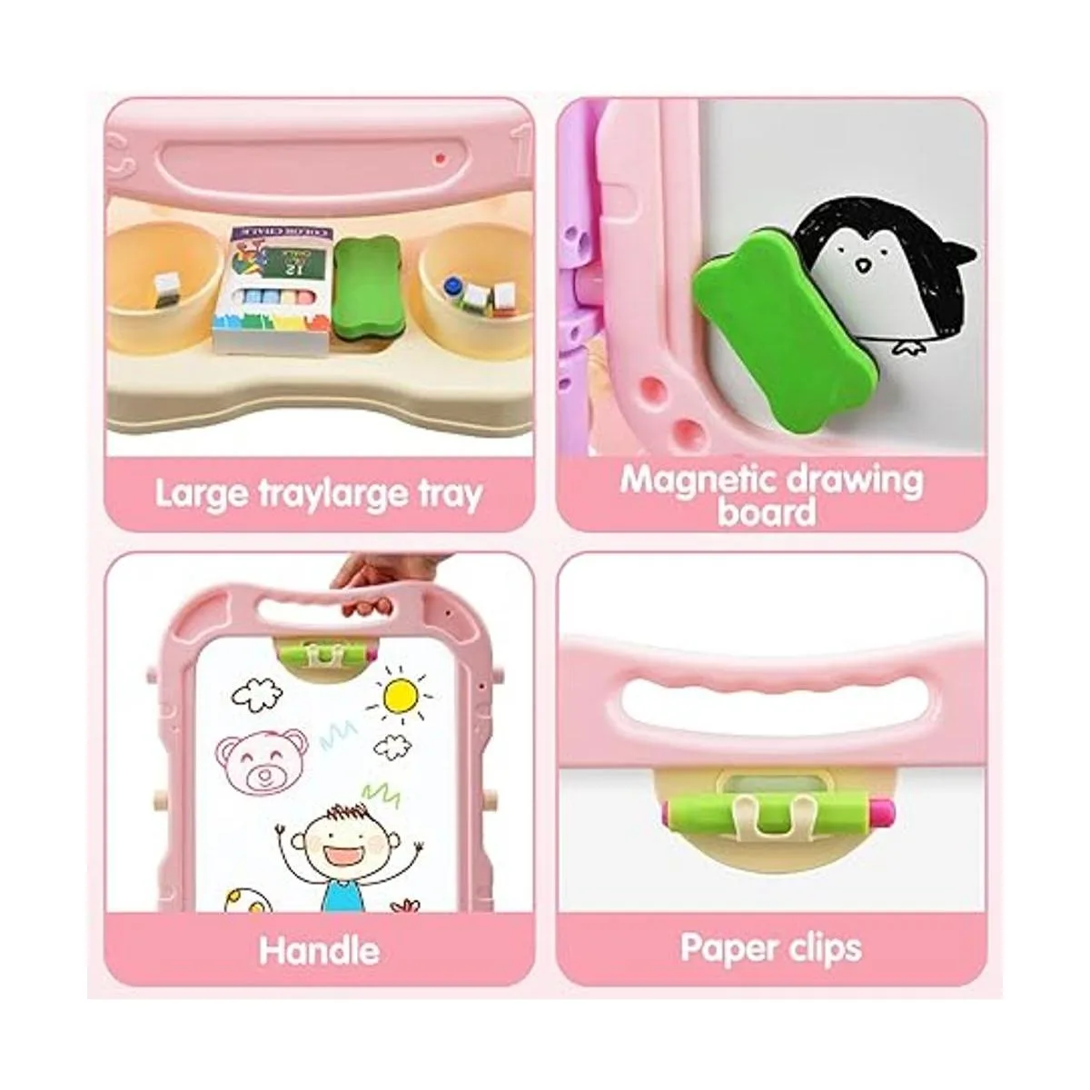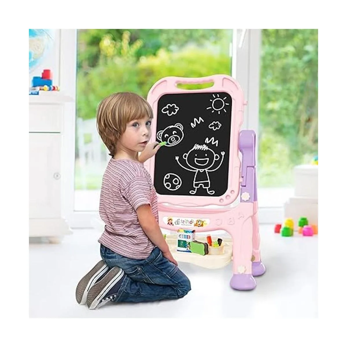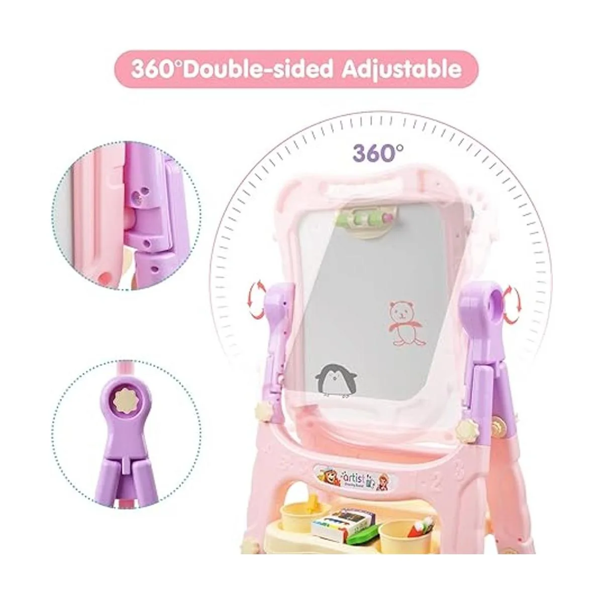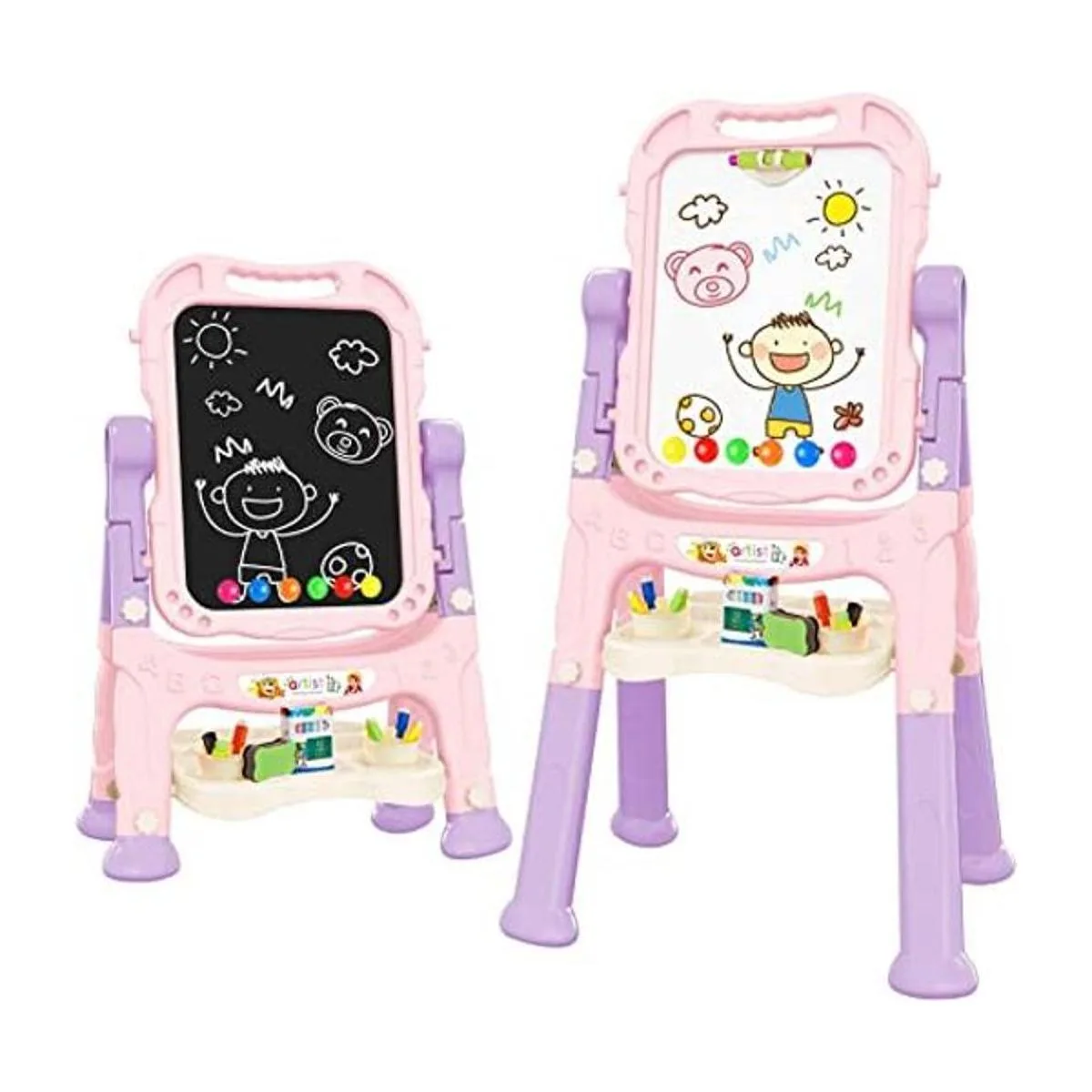 Amagoing Caballete para niños, caballete de arte ajustable para niños pequeños, tablero de dibujo magnético doble con suministros de pintura para niños y niñas, tamaño medio, rosa