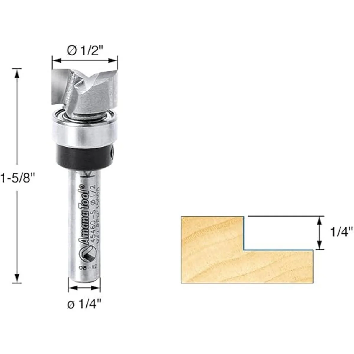 Amana Tool 45460S Broca de fresado con rodamiento de bolas diámetro de 12 por 14, altura de corte de 14