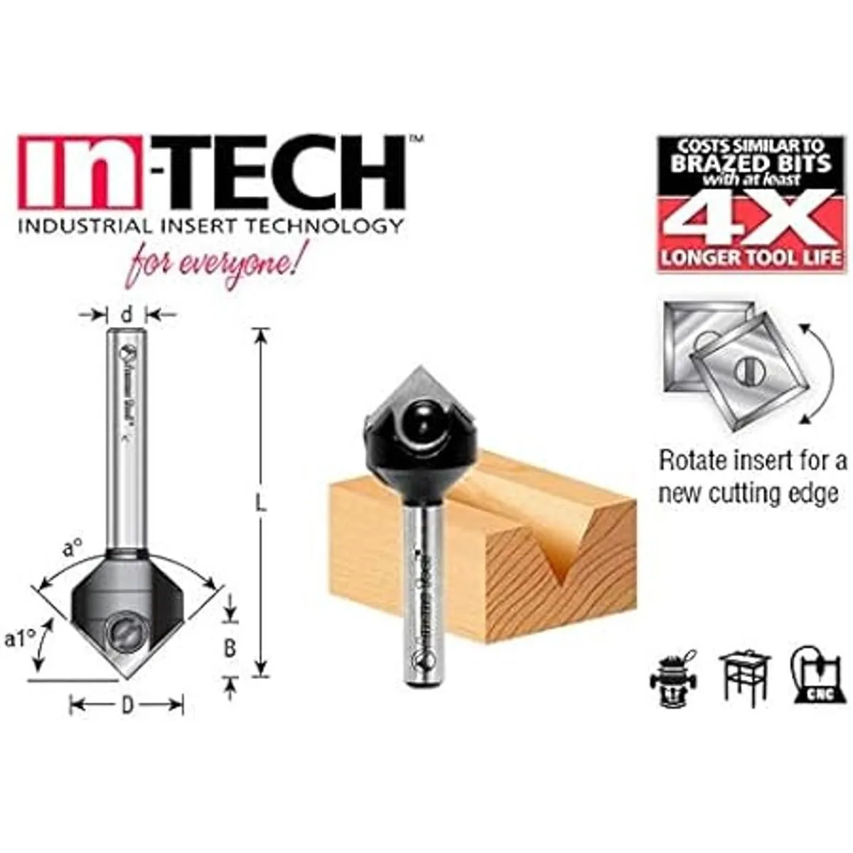 Amana Tool Ranura en V de carburo de inserción InTech RC45711 90 grados x 1116 diámetro x 2164 x 14 Inc