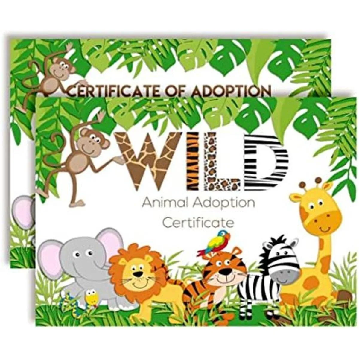 Sobrecarga adorable: diseñado por una madre talentosa, estas coloridas tarjetas cuentan con adorables animales de la selva: un elefante, un tigre, un león, una cebra y una jirafa. También hay un bonito mono colgando de los árboles. Estos son perfectos para entregar a todos tus invitados amantes de los animales en una celebración de cumpleaños temática de adopción de mascotas. Amanda Creation. Diseño original de Amanda Creation