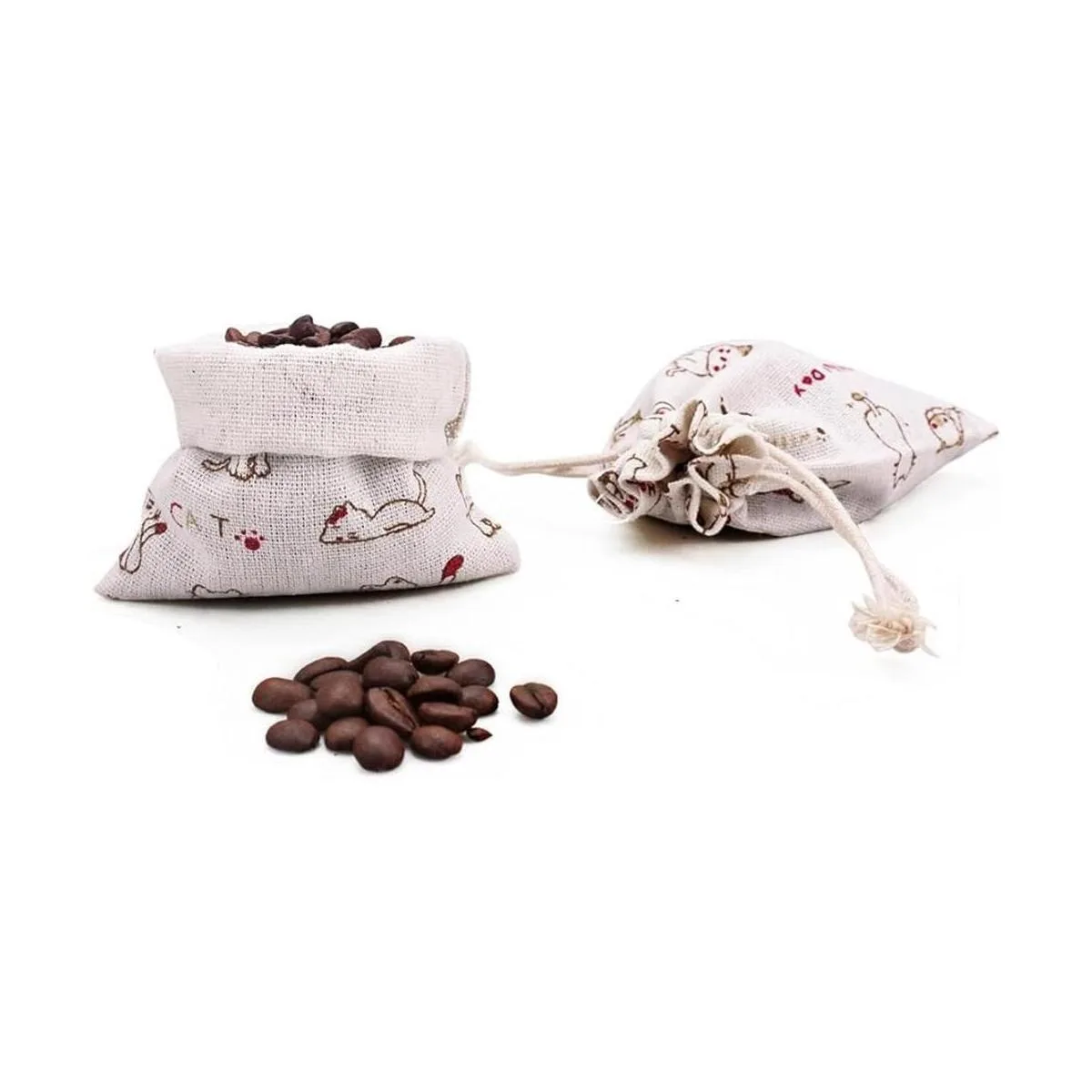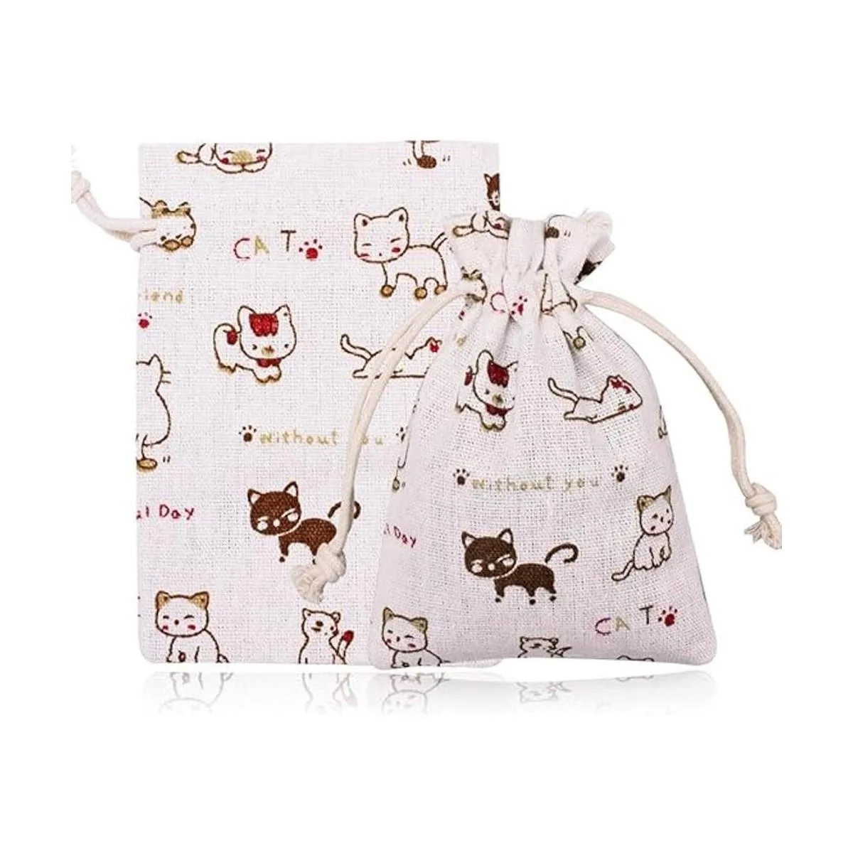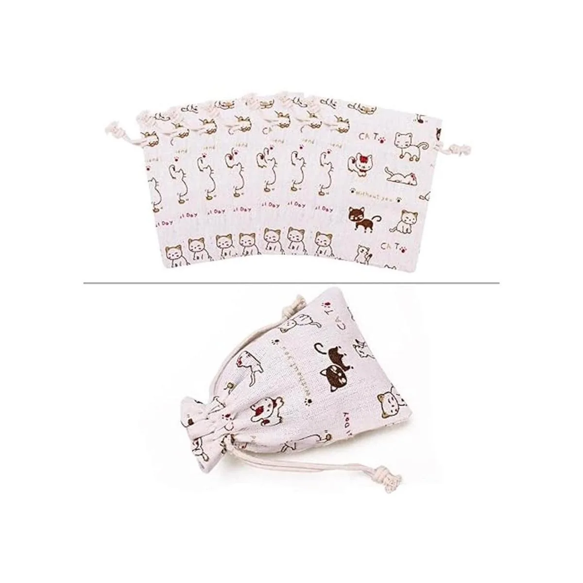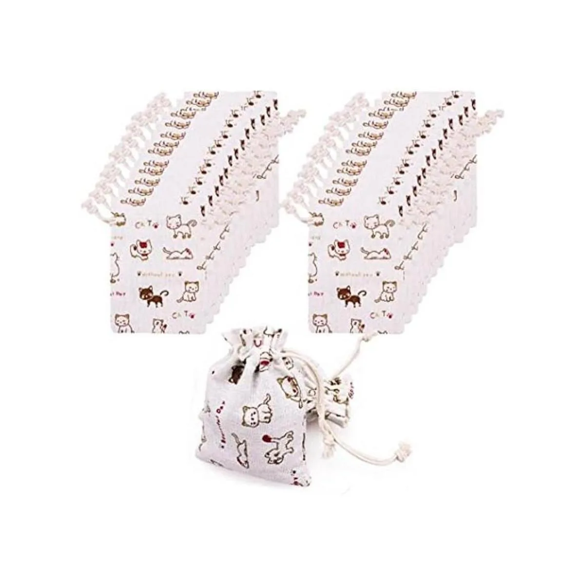 amariver hecha a mano material de tela de lino natural de calidad: juego de 24 Cute Cat patrón bolsas de cinta con doble cordón, duradero y cómodo para touch, de buena calidad garantiza la longevidad