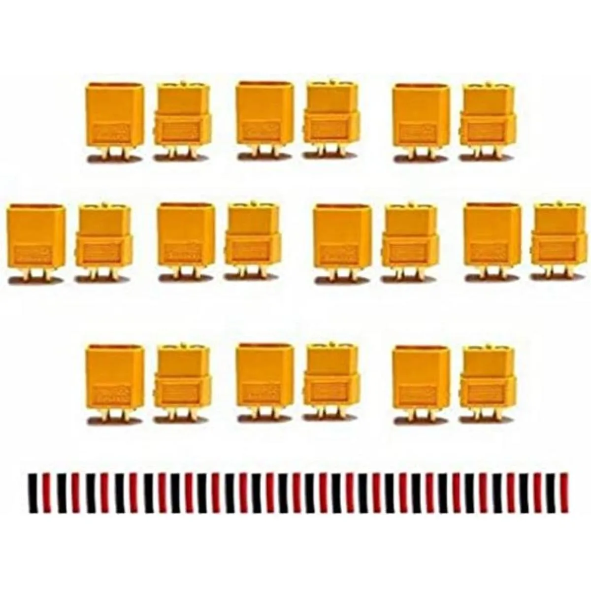 Material de nailon de alta temperatura: conector XT60 macho hembra en lugar de conectores USB, conexión apretada, fácil de conectar y desconectar. No es fácil generar calor y tiene una larga vida útil. Construcción de cobre chapado en oro para la conexión más eficiente con el tubo termorretráctil.
