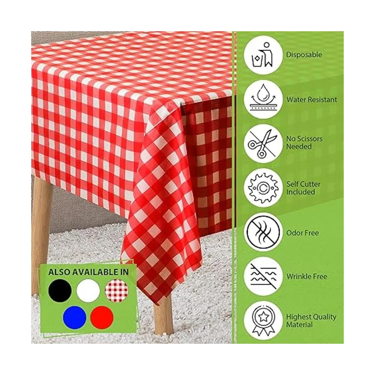 Cómodo de usar: muy fácil de desplegar y configurar la mesa; simplemente tira después. O límpialo y guárdalo para la próxima vez. No es tóxico, inodoro, reciclable y económico con cero residuos. El embalaje compacto tamaño de la caja es perfecto para el almacenamiento.
