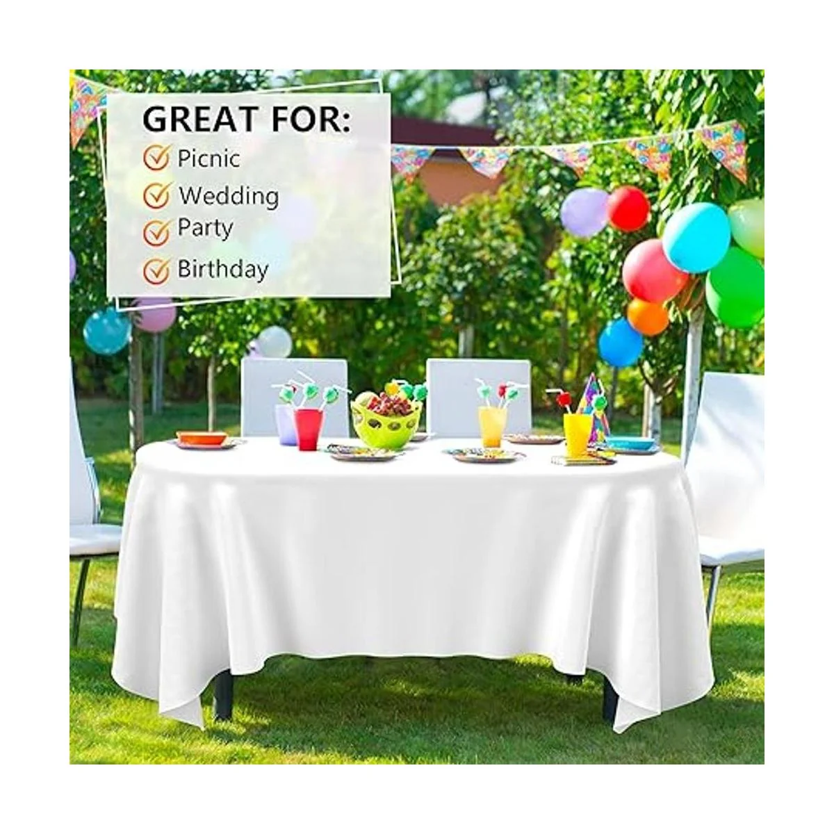Multiusos: nuestro mantel de plástico es perfecto para cumpleaños, bodas, fiestas, camping y se adapta a cualquier superficie de mesa: rectangular, cuadrado, redondo u ovalado. Un suministro esencial para una cena, banquete, cumpleaños, eventos y otras ocasiones. Una opción ideal para viajes por carretera y viajes o artes y manualidades.