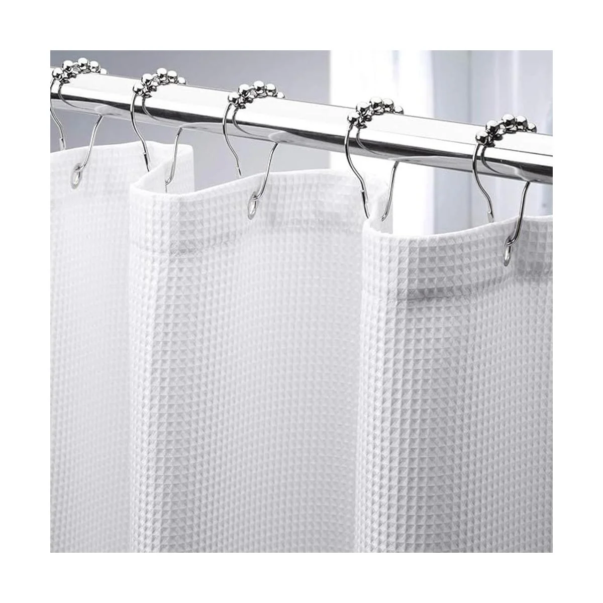 Experimenta el lujo en casa: cortina de ducha blanca pura para baño complementada con un elegante patrón de tejido gofre que añade elegancia a tu baño, ofreciendo un lujoso baño de hotel en casa.