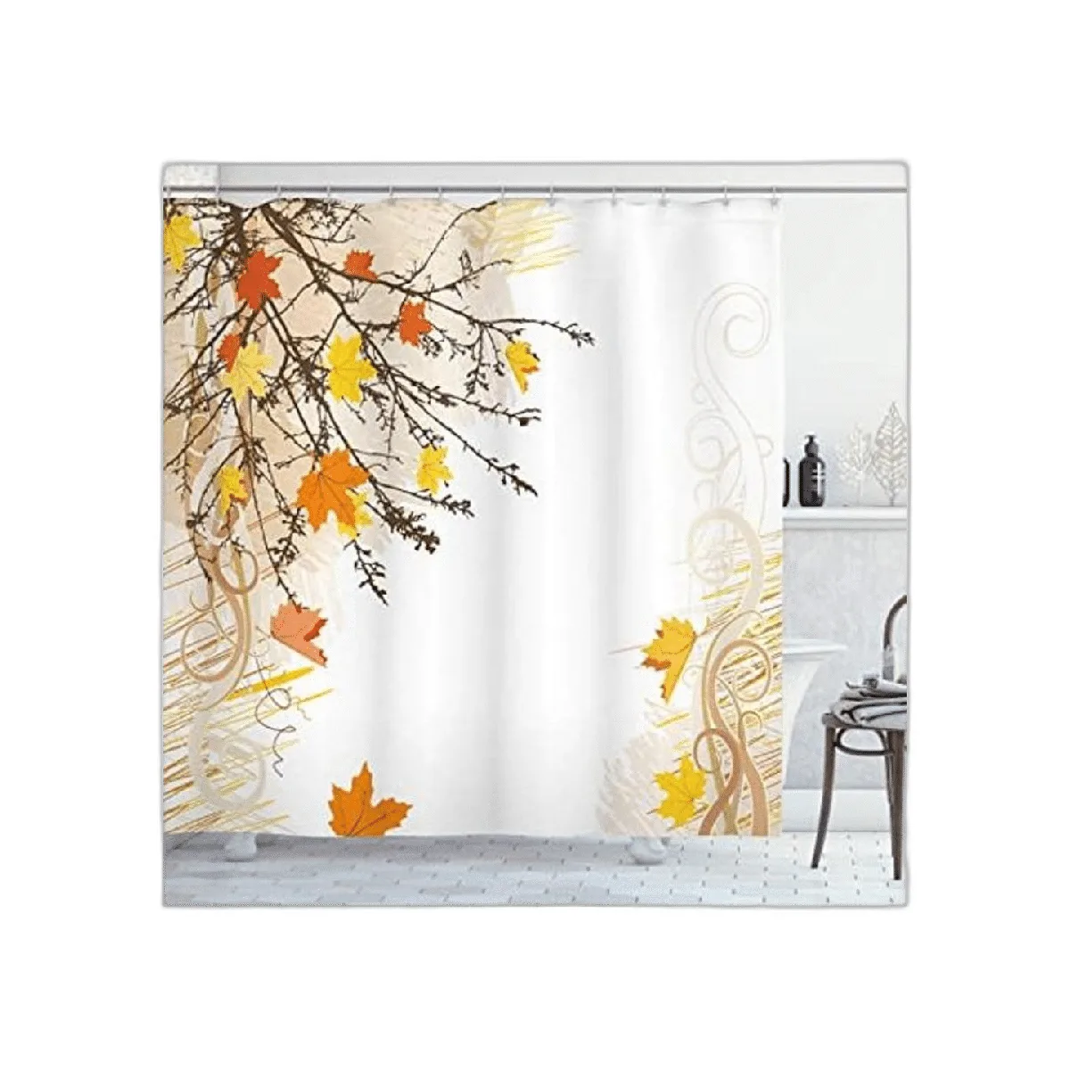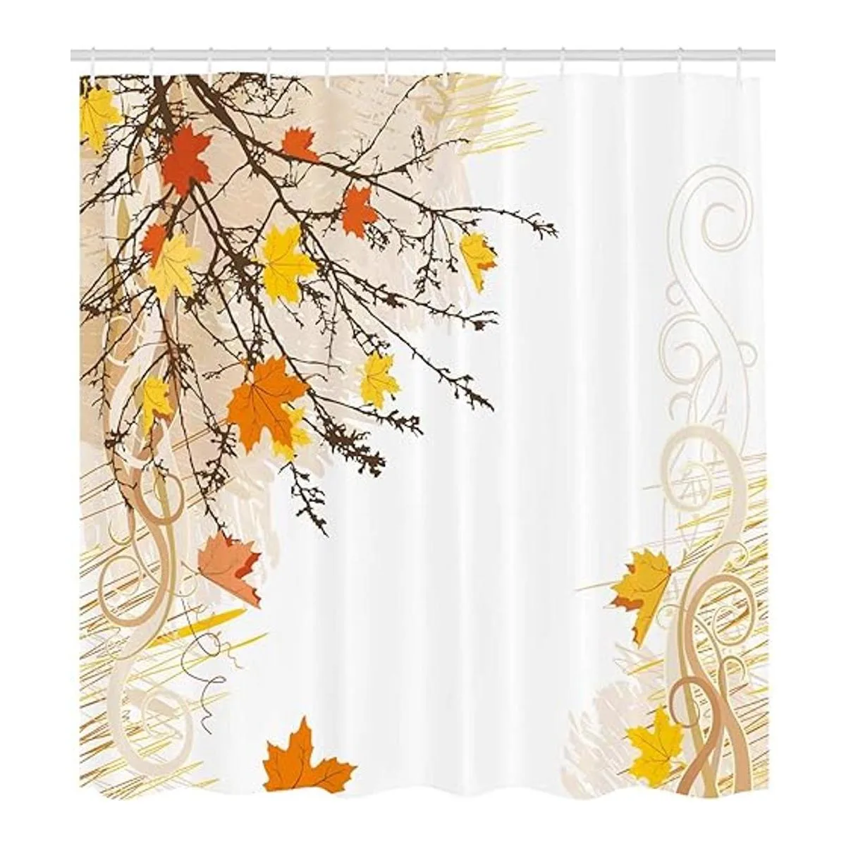 Ambesonne Cortina de ducha de naturaleza, ramas de hojas de arce de otoño en otoño con estampado de bosque, decoración de tela de tela para juego de baño de granja con ganchos, decoración de apartamento, 69 pulgadas de ancho x 70 pulgadas de largo, amarillo bronceado