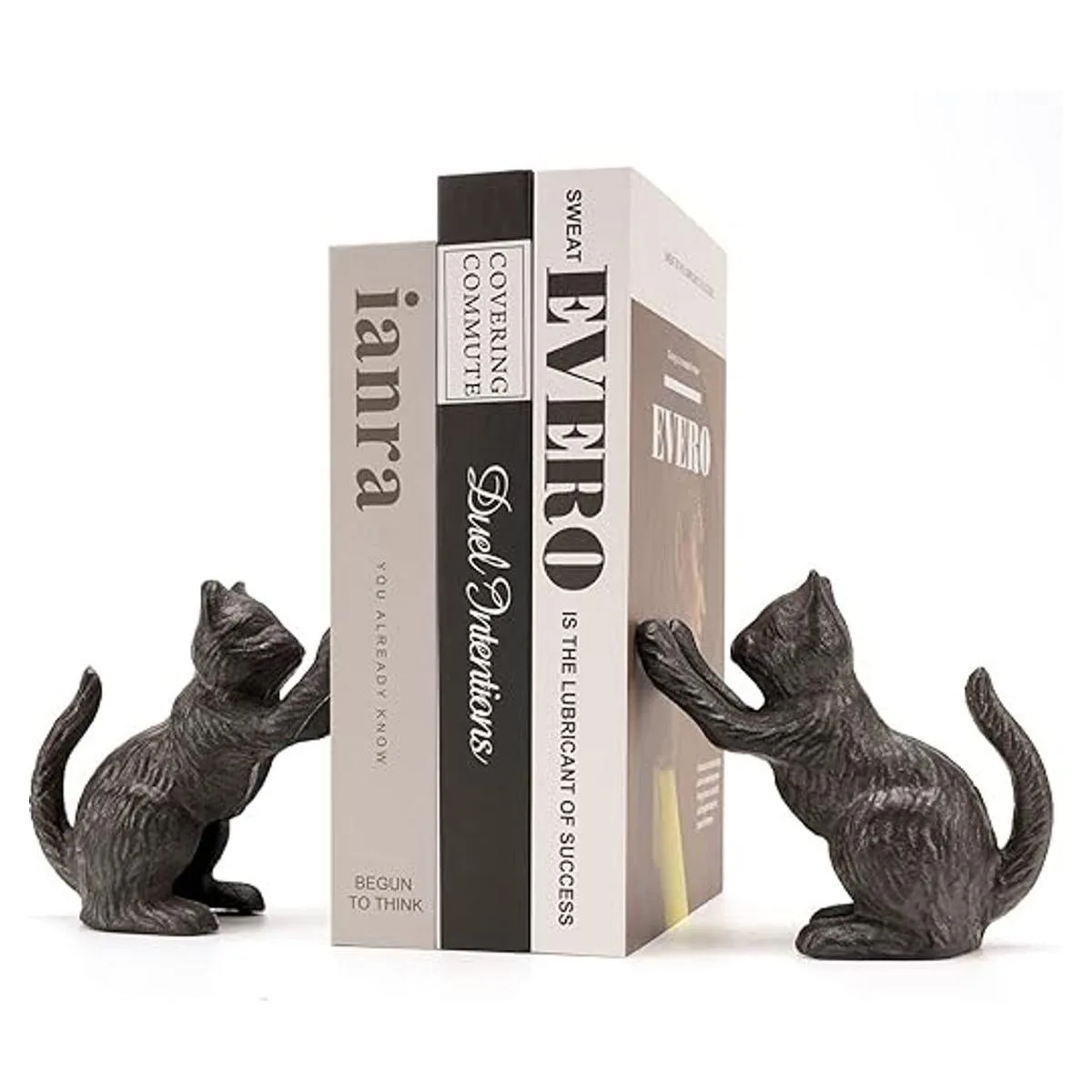 PREMIUM MATERIAL Cast iron is longlasting and perfect for your book stand, office, or multiple bookshelves. Purchase several cat decor sets for a collection of spunky kittens to adorn your space.