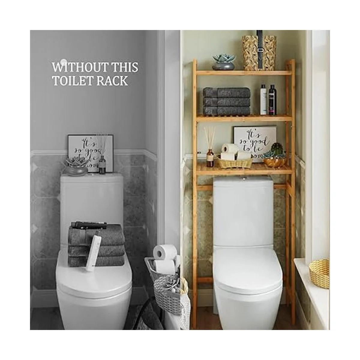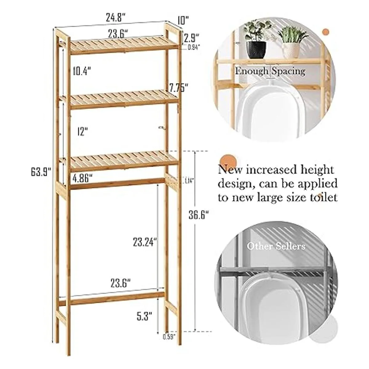 Ambird Almacenamiento sobre el inodoro, organizador de baño de 3 niveles sobre el inodoro con estantes de bambú resistentes, estante de inodoro multifuncional, fácil de montar y ahorrar espacio, 25 x 10 x 64 pulgadas (color original)