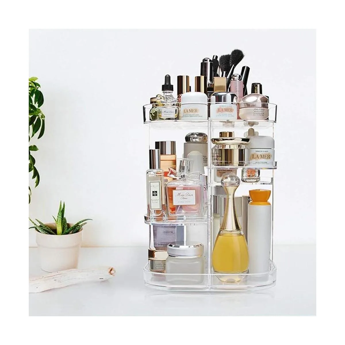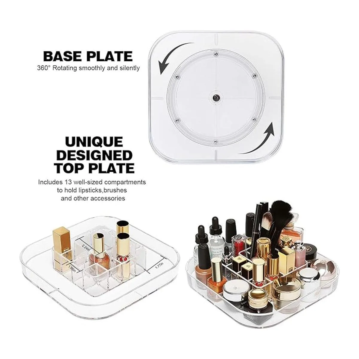 Organizador de maquillaje giratorio de 360 grados: organiza y almacena perfectamente tus cosméticos y accesorios; fácil acceso a todos tus productos de maquillaje. Fijarlo con anillos de goma para asegurarte de que está bien asegurado