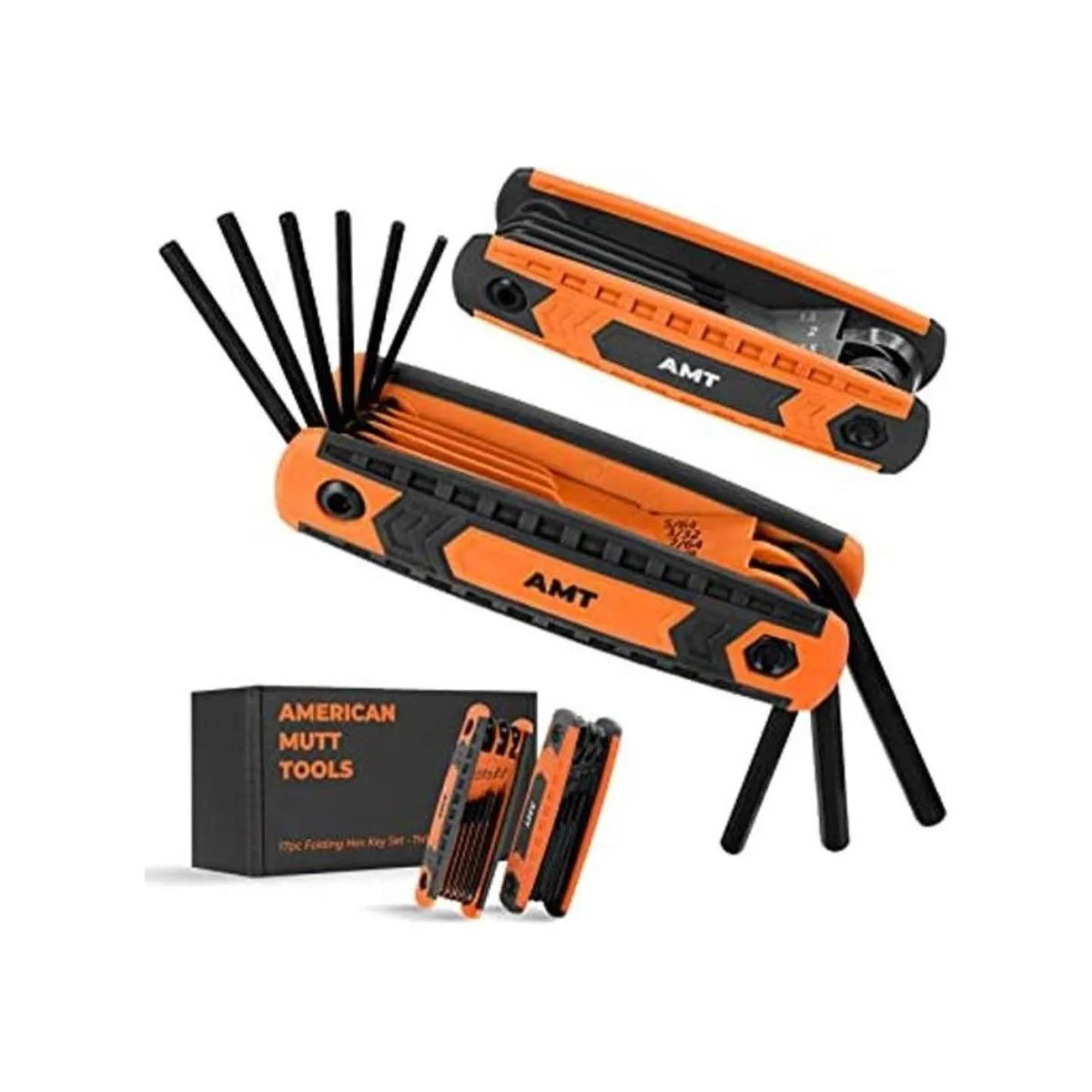 AMERICAN MUTT TOOLS Juego de llaves Allen plegables de 17 piezas Juego de llaves hexagonales SAE métricas y estándar Juego de llaves Allen pequeñas tratadas térmicamente Juego de llaves Allen portátiles