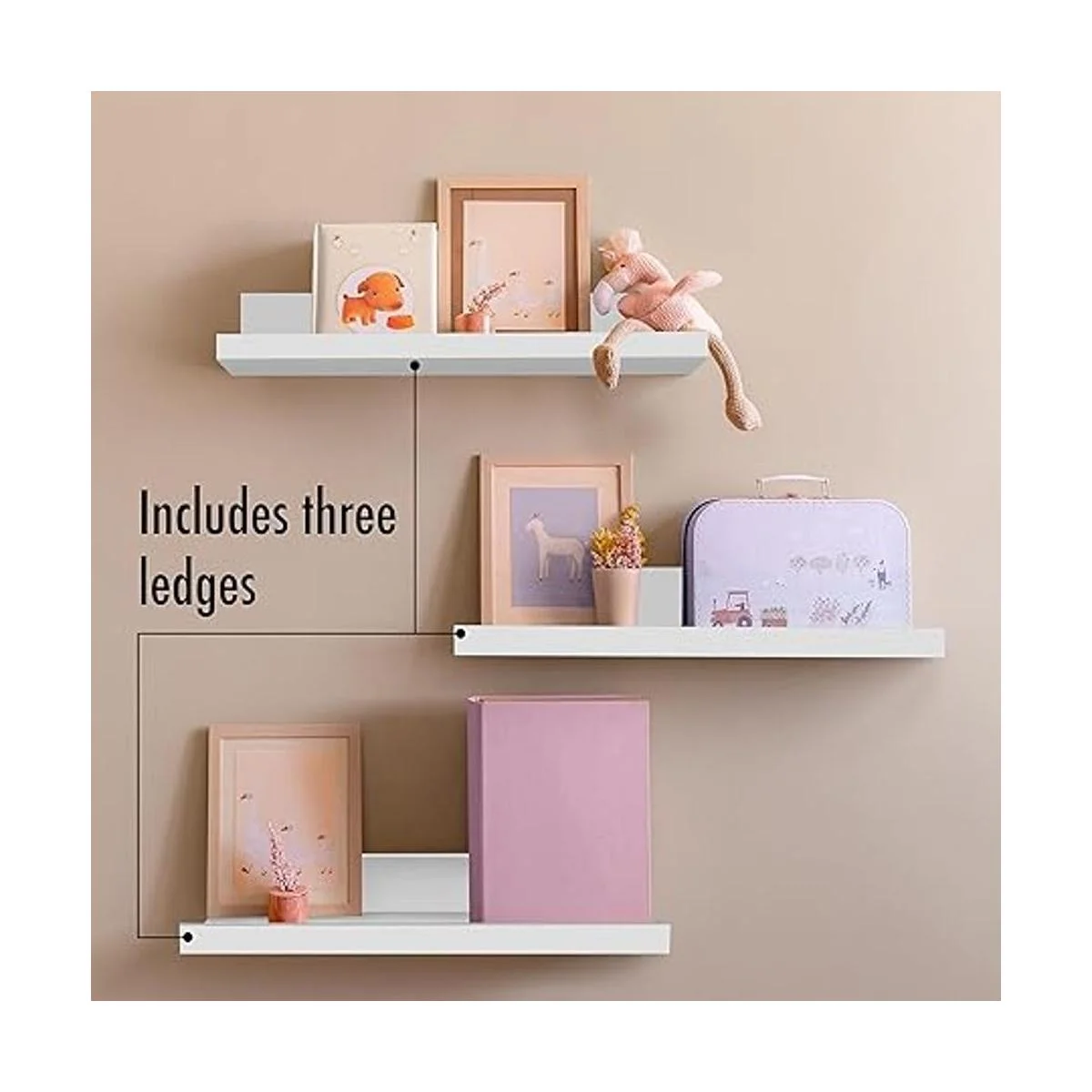 Dimensiones: cada repisa de pared mide 14 pulgadas de largo y 4 pulgadas de ancho; juego de 6 cubiertas de tornillo incluidas; accesorios para colgar no incluidos