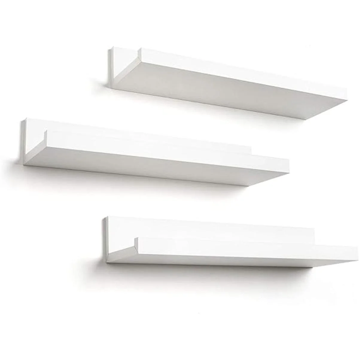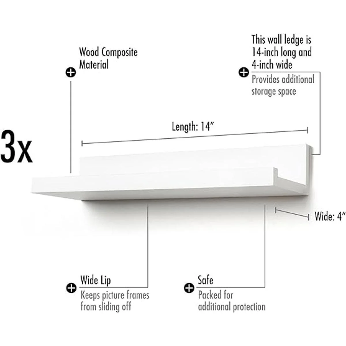 Americanflat Juego de 3 estantes flotantes de 14 pulgadas de madera compuesta blanca, estantes de almacenamiento montados en la pared para dormitorio, sala de estar, baño, cocina, oficina y más, 14 pulgadas paquete de 3