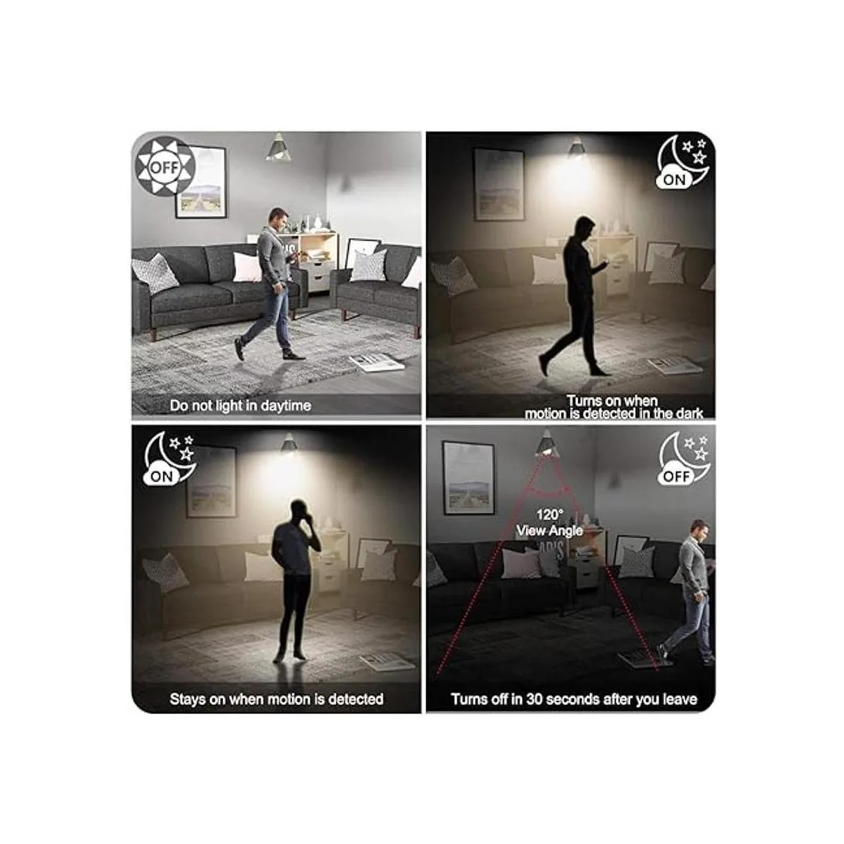 Sensor del atardecer al amanecer: integrado un sensor de fotocélula, la bombilla inteligente se enciende automáticamente por la noche 25lux cuando se detecta movimiento y se apaga durante el día 45lux incluso con movimiento detectado. Solo se enciende cuando la luz ambiental está oscura, evita un trabajo innecesario durante el día o cuando la luz ambiental es brillante. El diseño de bajo consumo evita el desperdicio de electricidad.