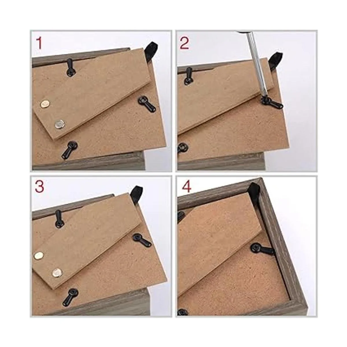 Fácil de instalar: simplemente gira los tornillos a la parte posterior de tus marcos de fotos y luego cuélgalos en la pared. Los clavos son muy pequeños, no dañan la pared