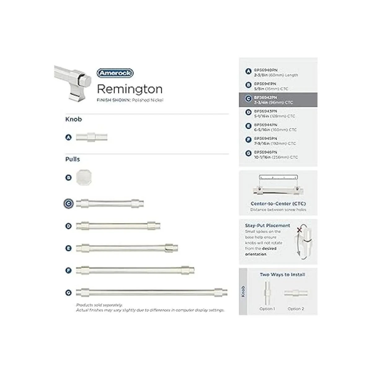 Amerock Remington Tirador de gabinete 3.780 in, níquel pulido, 334 pulg