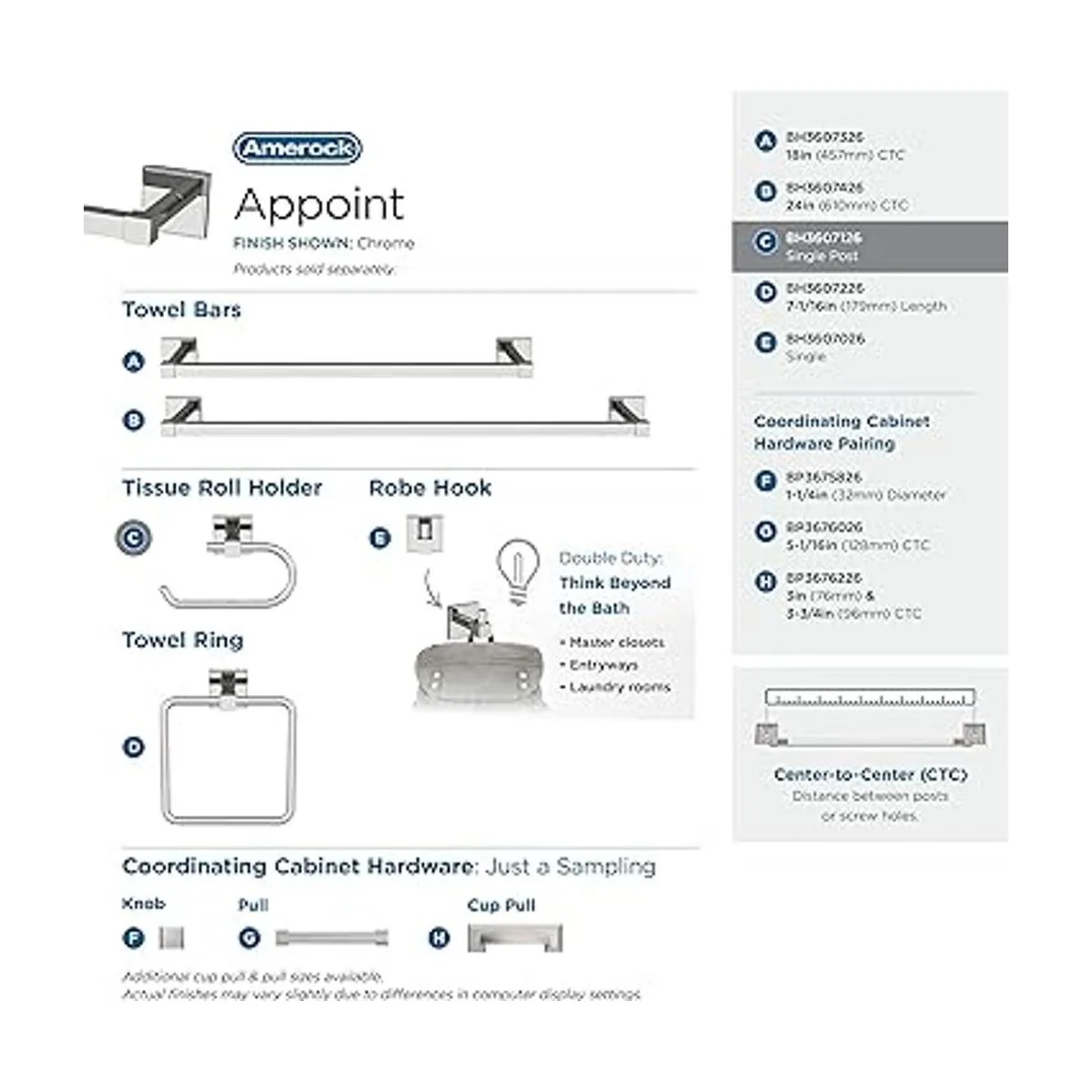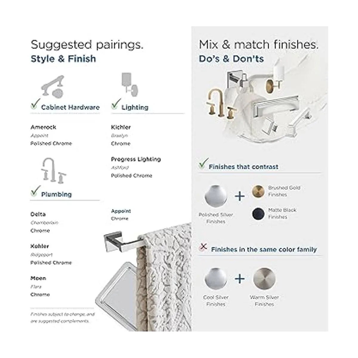 Combina con pomos y tiradores de armario a juego de la colección Amerock Appoint para un aspecto de hardware de diseño sin esfuerzo