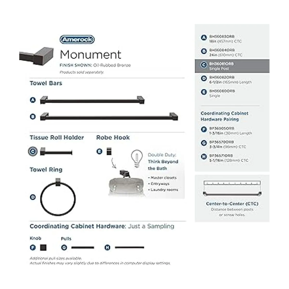 Amerock Soporte para papel higiénico Bronce aceitado Monumento Soporte para pañuelos de un solo poste Accesorios de baño
