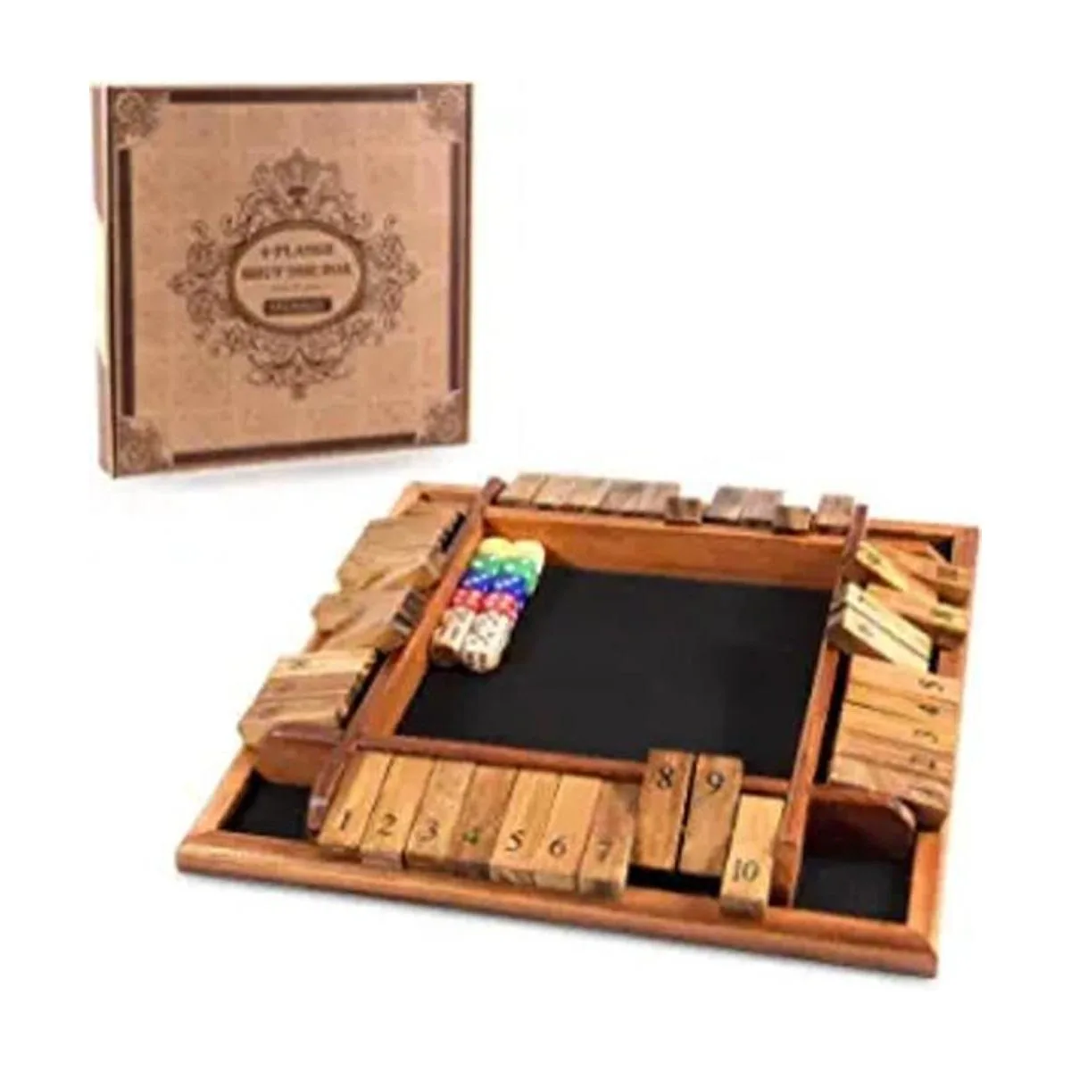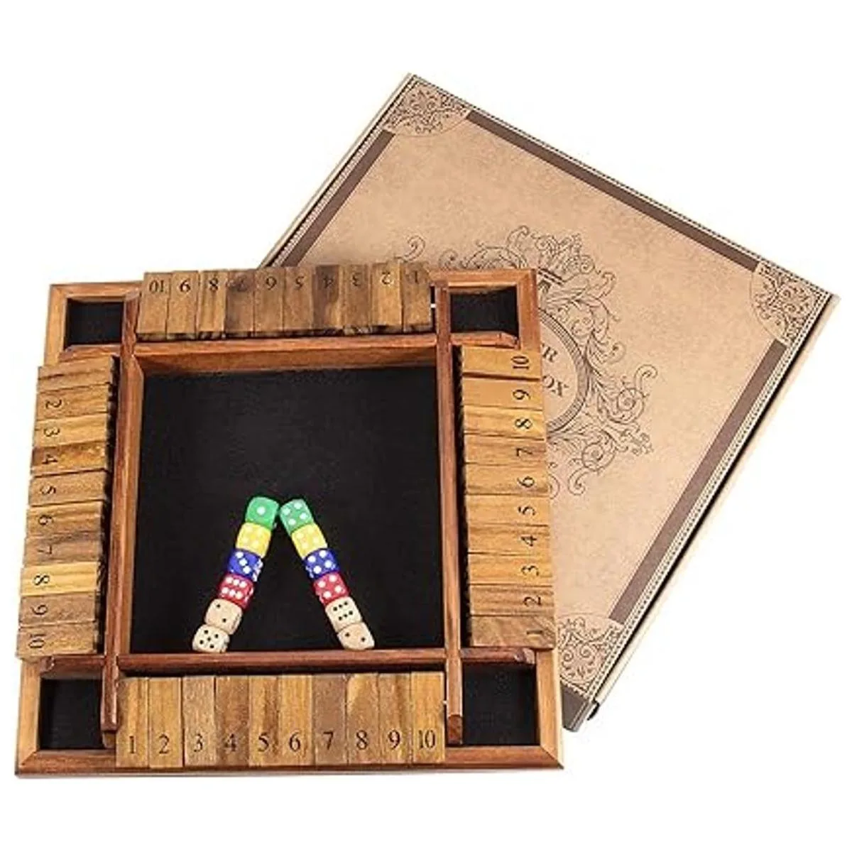 Juego de mesa de alta calidad: este juego de mesa de madera de 4 vías para 1 a 4 personas está hecho de exquisita madera maciza natural, 12 pulgadas, con tableros de 10 números de 4 vías, 12 dados 8 colores, 4 repuestos de madera y 1 instrucciones idioma español no garantizado, con fieltro de billar marrón en la superficie de juego. Duradero, resistente a los arañazos y respetuoso con el medio