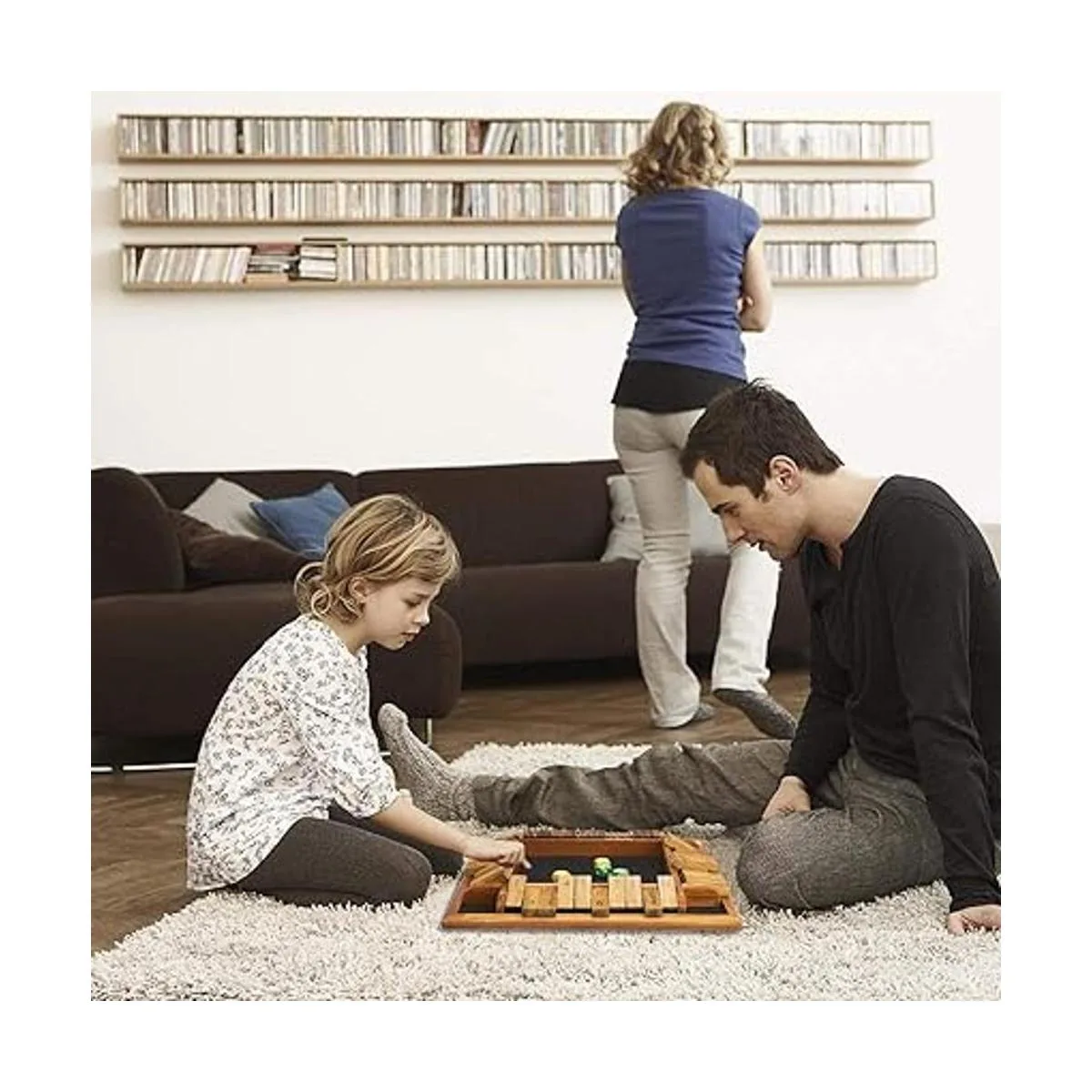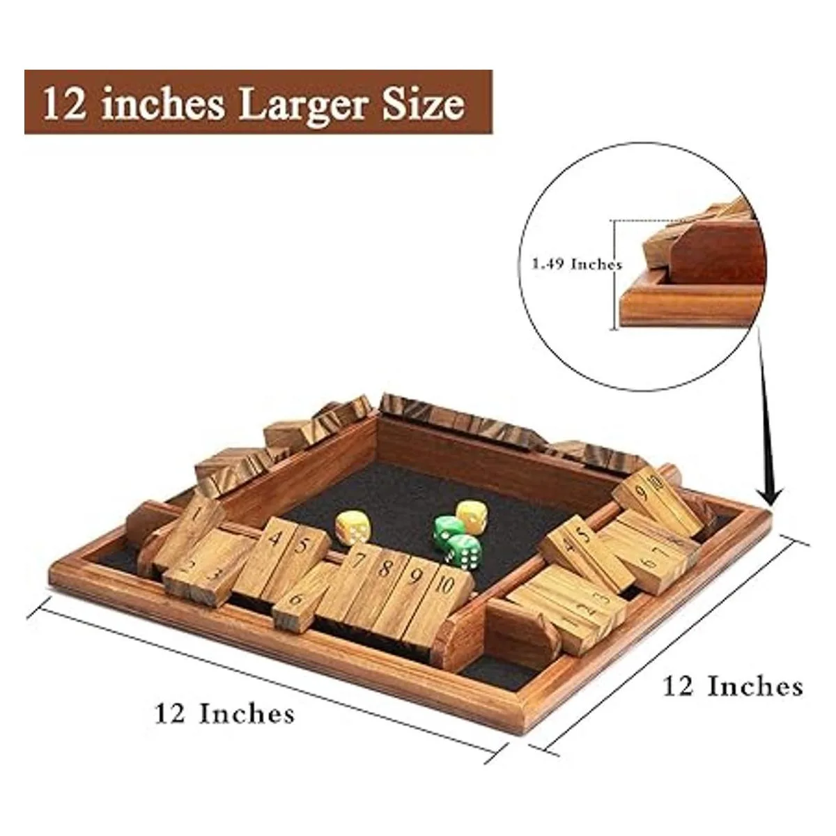 AMEROUS Juego de dados de 1 a 4 jugadores, juego de matemáticas de mesa de madera con 12 dados e instrucciones de cierre de la caja para niños y adultos, aula familiar, hogar o pub 12 pulgadas
