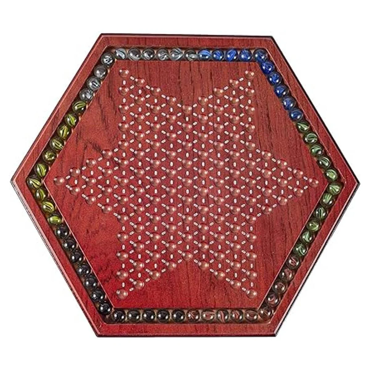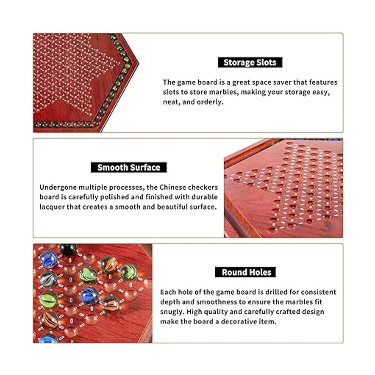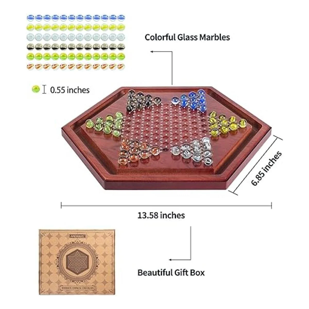 AMEROUS Juego de mesa chino de madera de 13.6 pulgadas con 60 canicas de vidrio coloridas, juego de estrategia clásico para niños, adultos, juego familiar hasta seis jugadores
