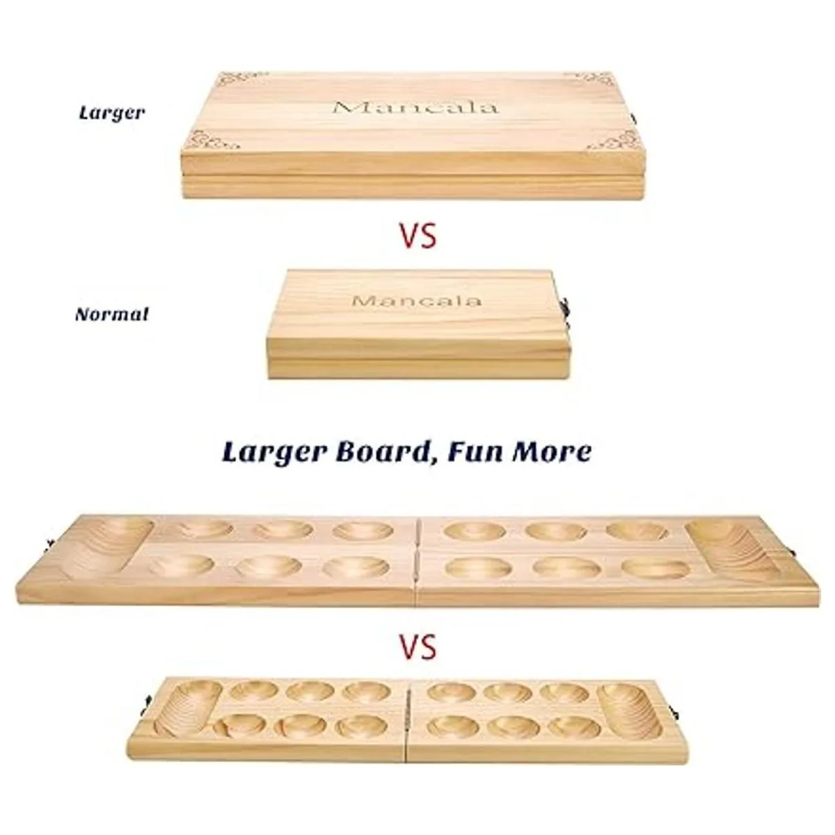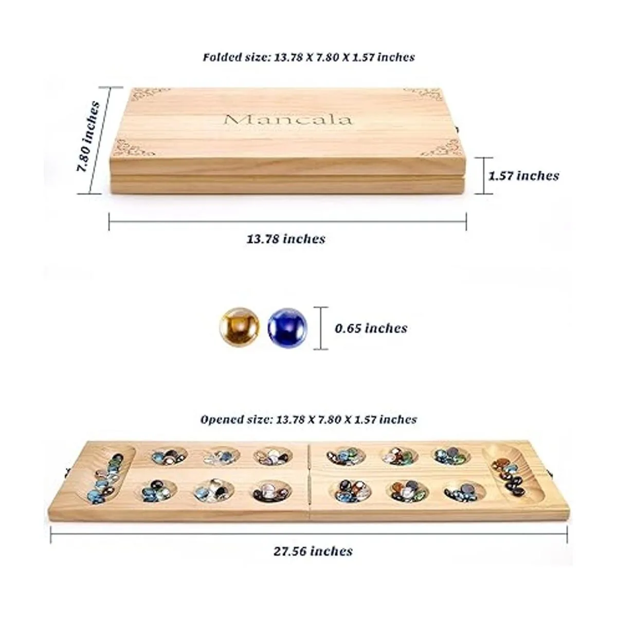 AMEROUS Juego de mesa de madera Mancala Tamaño más grande mejorado 728 piedras de vidrio multicolor de bonificación Tablero plegable Paquete de regalo Instrucciones de Mancala Juego de mesa portátil para adultos y niños