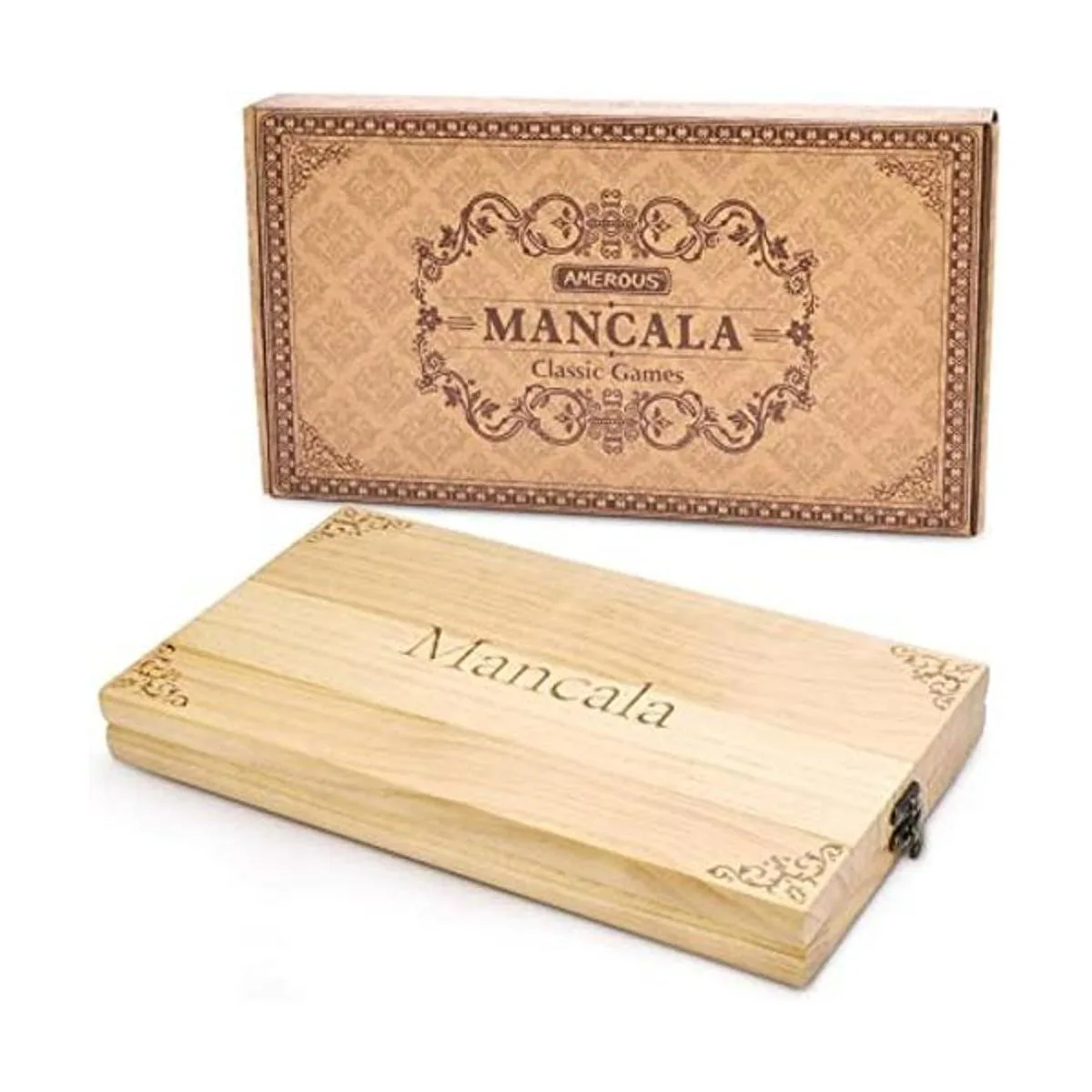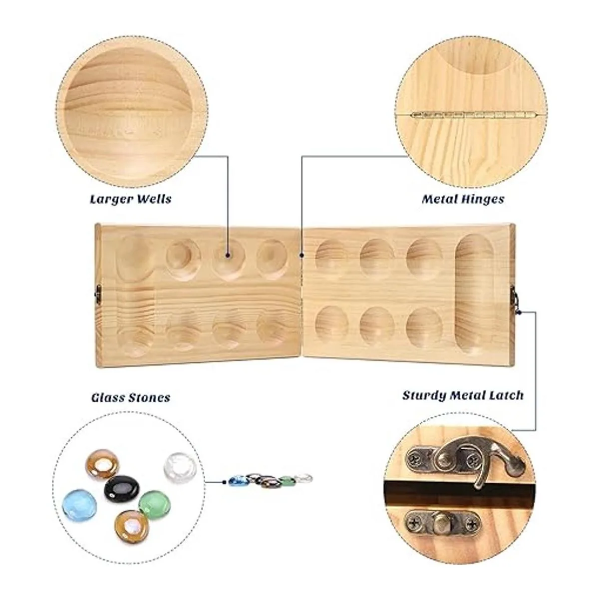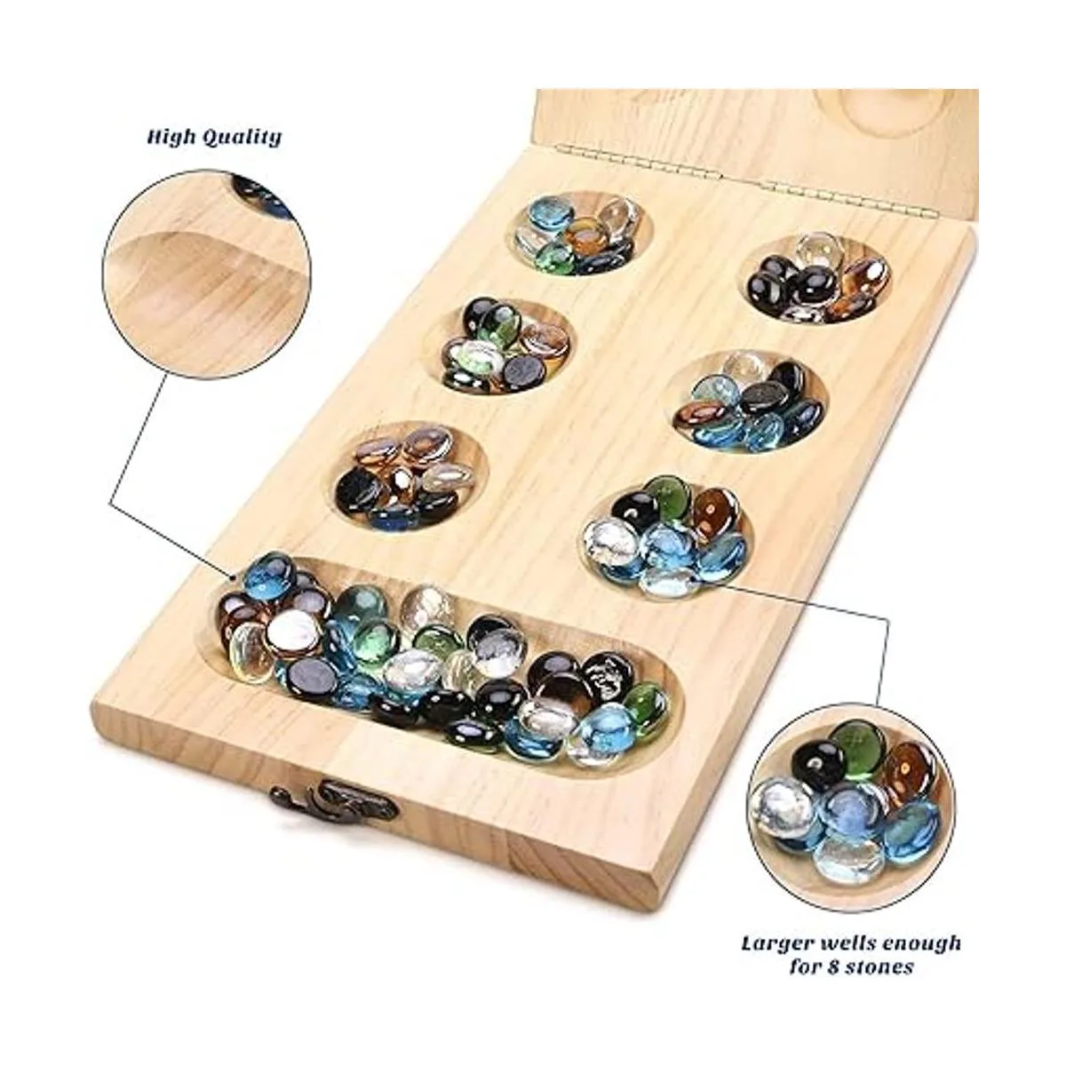 Juego de mesa clásico: juego de mesa de mancala AMEROS, uno de los juegos de estrategia más antiguos, proporciona diversión duradera para ti, tu familia y amigos, contiene un tablero de mancala de madera plegable y 72 piedras de mancala de vidrio multicolor como reemplazo, y proporciona 8 piedras adicionales, no más preocupaciones por perderlas