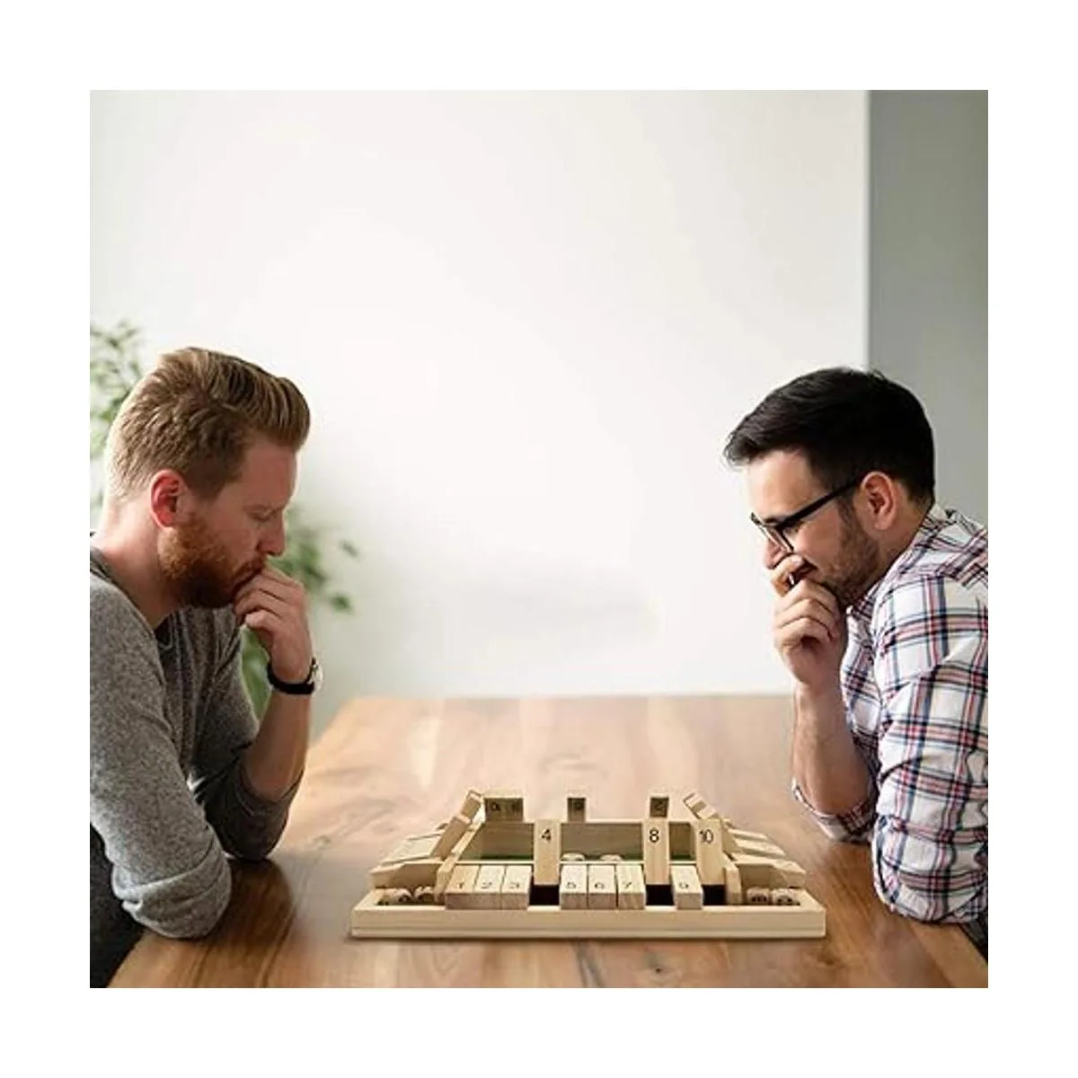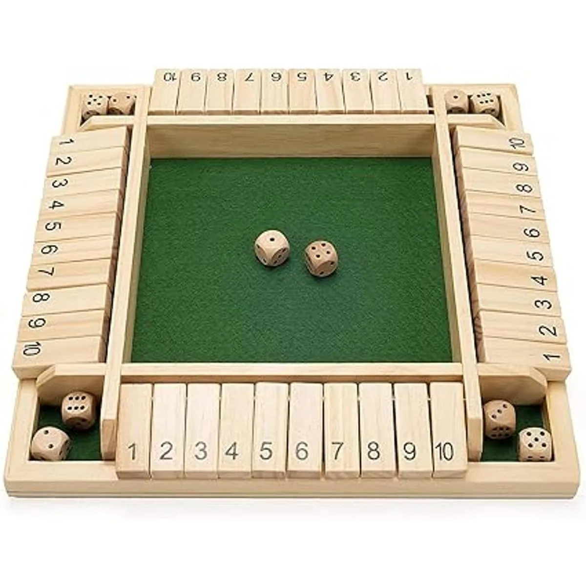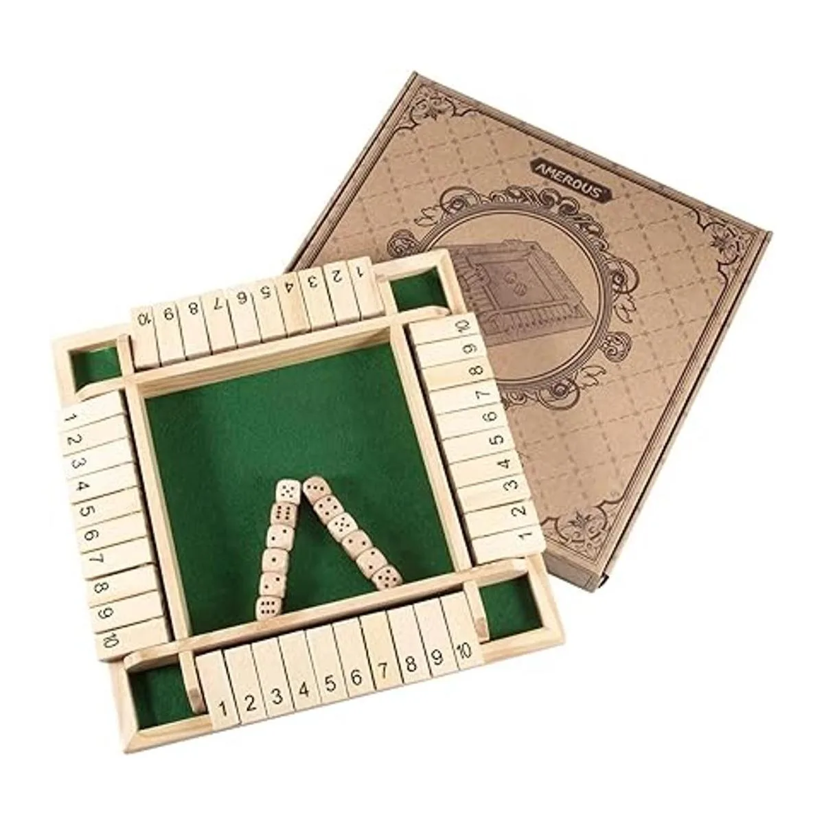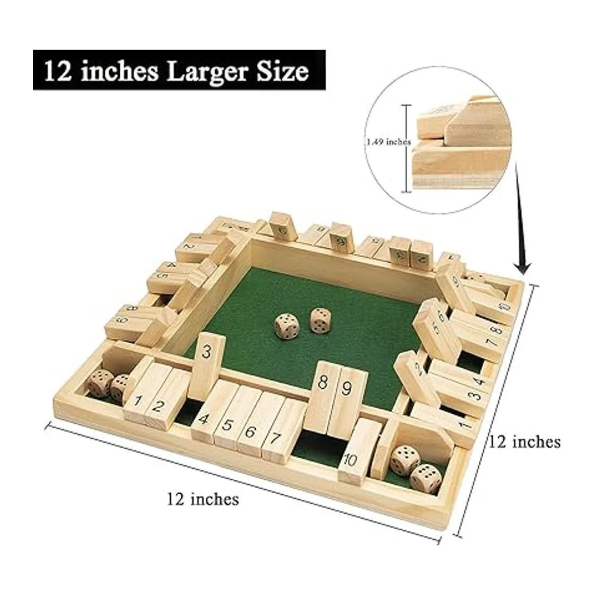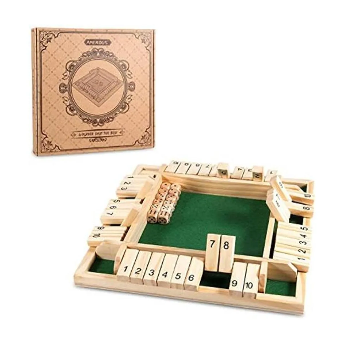 Amerous Juego familiar Shut The Box de 12 pulgadas, 14 jugadores, juego de mesa de 4 lados con 12 dados y reglas de Shut The Box idioma español no garantizado para niños, adultos