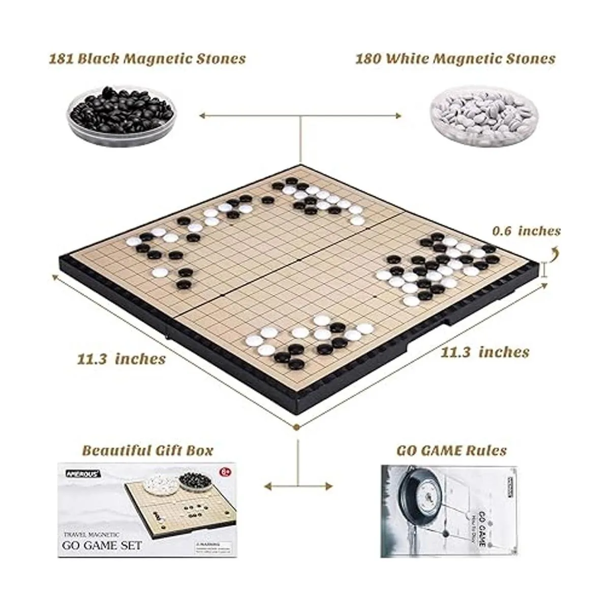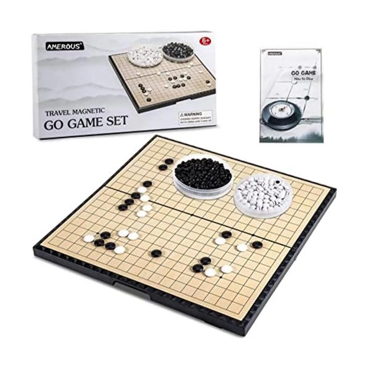 AMEROUS Juego magnético de 11 pulgadas 19 x 19, juego de mesa plegable de viaje con piedras de plástico magnéticas y reglas de juego para principiantes, niños, adultos Weiqi