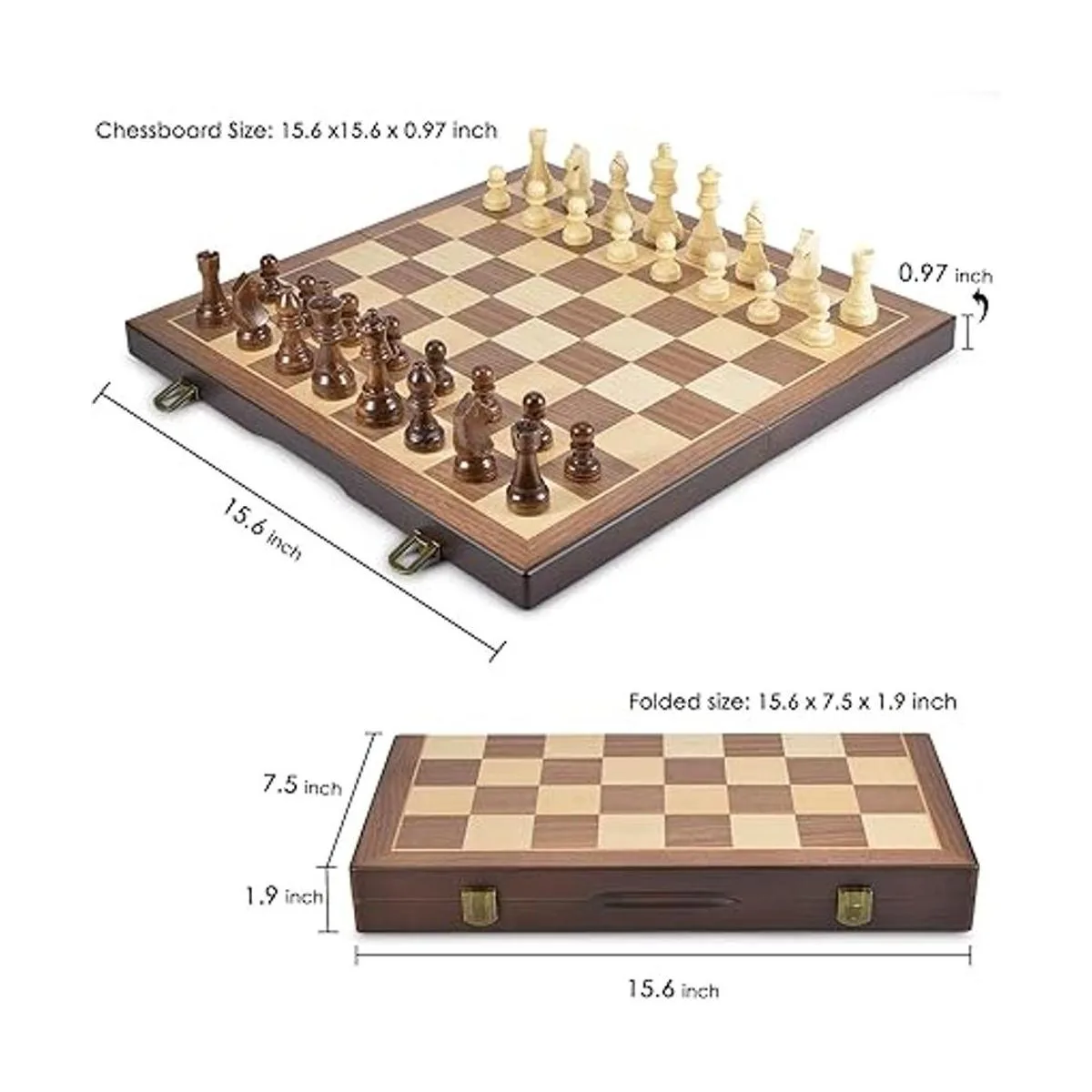 AMEROUS Juego magnético de ajedrez y damas de madera, juego de mesa de ajedrez de 15 pulgadas 2 en 1, 2 reinas adicionales, paquete de regalo, instrucciones idioma español no garantizado, ranuras de almacenamiento de piezas de juego, juego de ajedrez para principiantes para niños y adultos