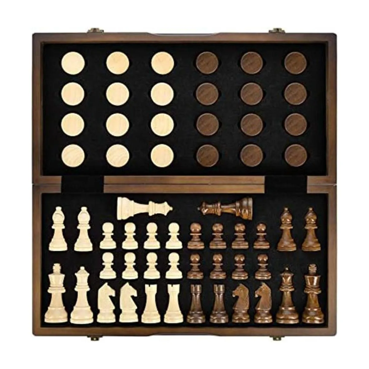 Juego de ajedrez magnético: si quieres disfrutar de un divertido y relajante juego de ajedrez dondequiera que vayas, incluso en un tren o un coche de conducción, definitivamente te encantará este juego de ajedrez y damas de madera magnético. El juego de ajedrez magnético de alta calidad puede mantener cada pieza de ajedrez y damas en su lugar de forma segura, lo que permite un fácil juego de ajedrez sobre la marcha