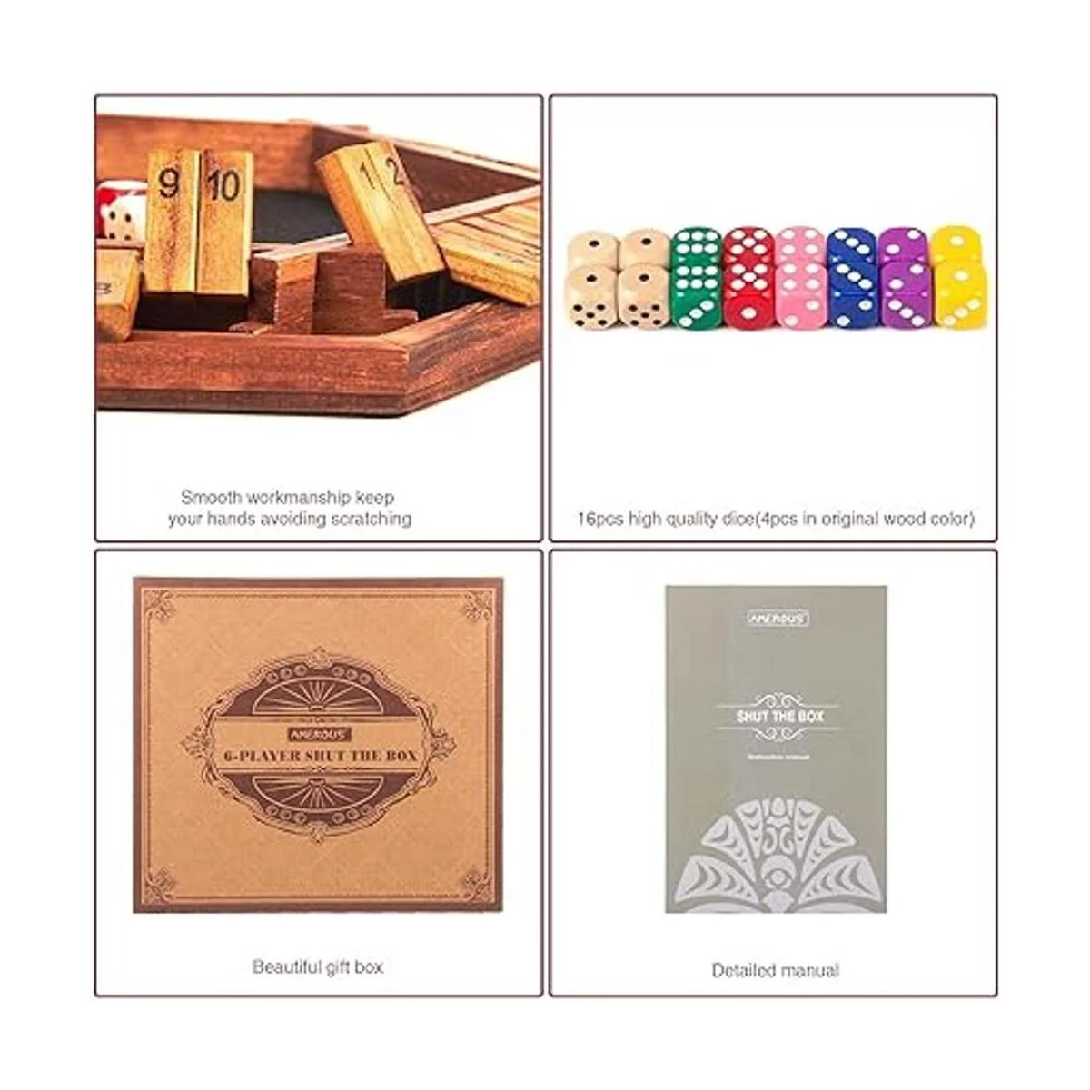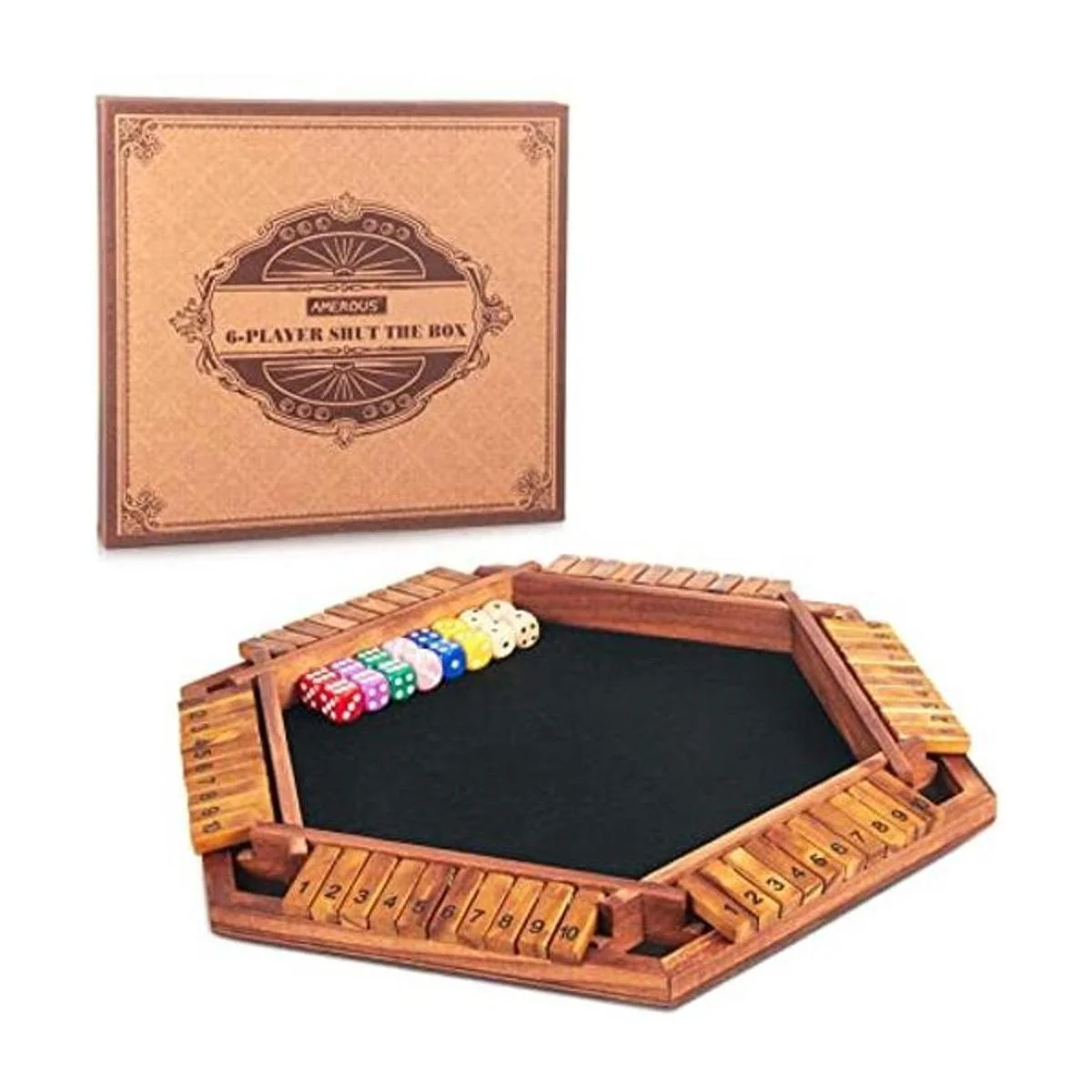 Juego profesional para cerrar la caja: AMEROUS es un fabricante profesional de marcas de juegos de mesa, nuestro juego de madera es un clásico juego de dados tradicional que ofrece diversión sin fin. Con una nueva actualización que puede ser jugada por hasta 6 jugadores al mismo tiempo, completa con 1 a 10 combinaciones de números, 4 madera 12 plástico de color, es uno de los juegos de matemáticas más populares