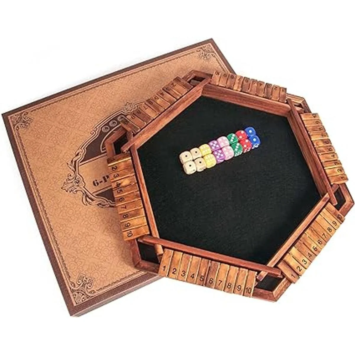 AMEROUS Juego mejorado de dados de 1 a 6 jugadores, juego de matemáticas de mesa de madera con 16 dados, reglas de cierre de caja, caja de regalo, juego de mesa para niños y adultos, fiesta en casa o pub