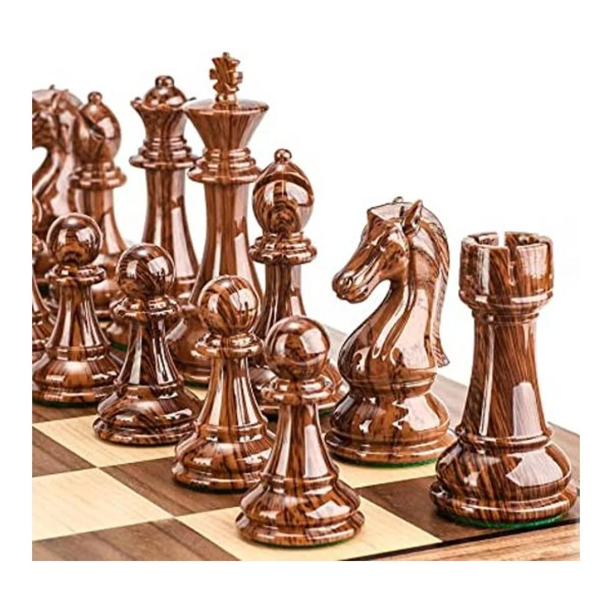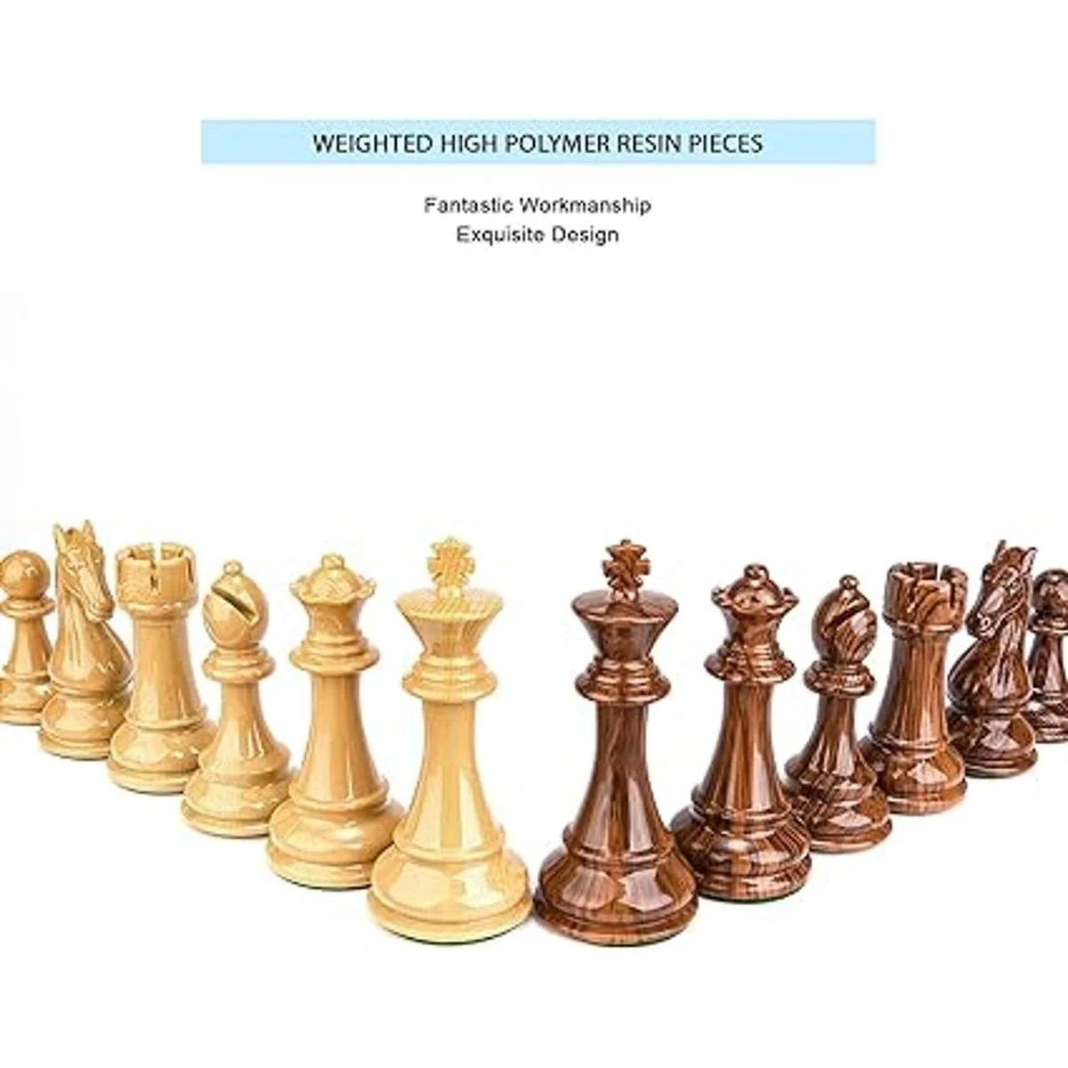 Material de polímero de alta calidad: hechas de material plástico de alto polímero seleccionado, estas piezas de ajedrez extra pesadas son pesadas, estables y suaves al tacto. El acabado pulido con grano de madera vívido en colores claros y oscuros se ve muy natural, lo que hace que estas piezas de ajedrez sean un complemento ideal para todo tipo de tablas de ajedrez