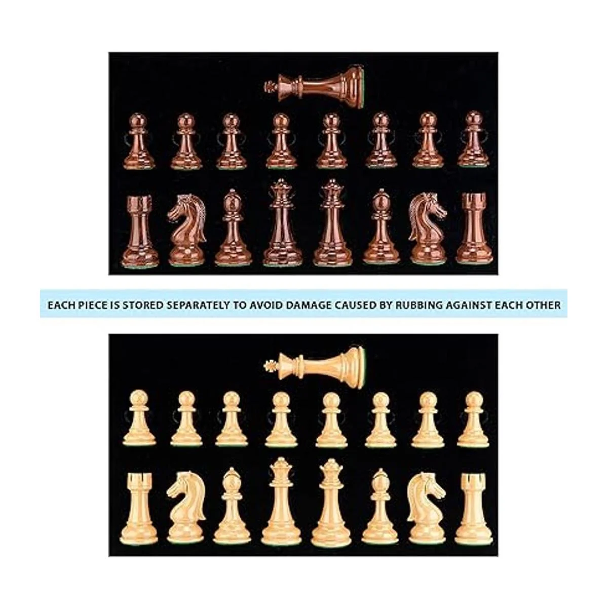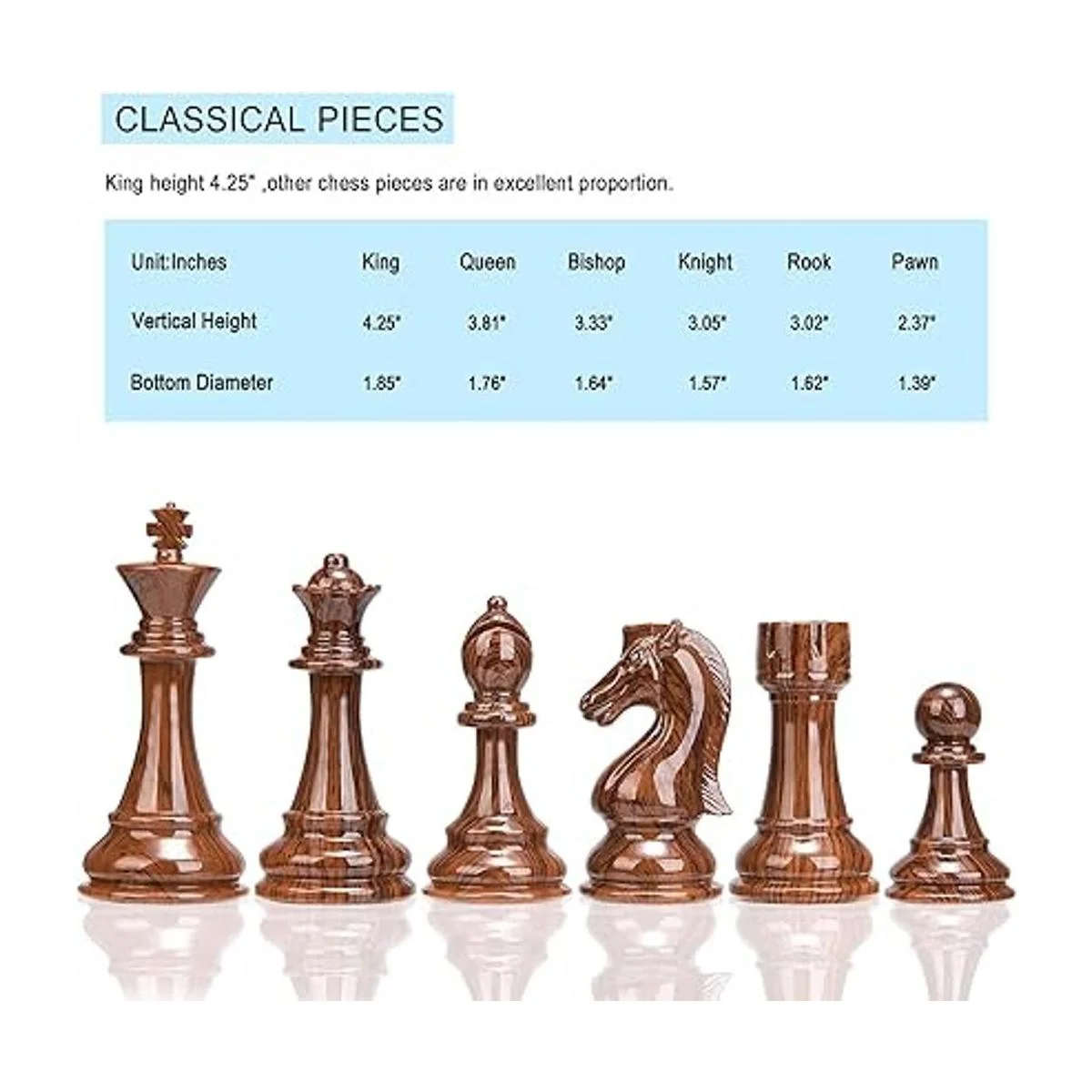 Juego completo de ajedrez: hay 34 piezas de ajedrez, incluyendo reyes y reinas de 4.25 pulgadas, torre, obispo, caballero y peones en proporción. Se añaden 2 reinas adicionales al juego de ajedrez como accesorios gratuitos a tu disposición