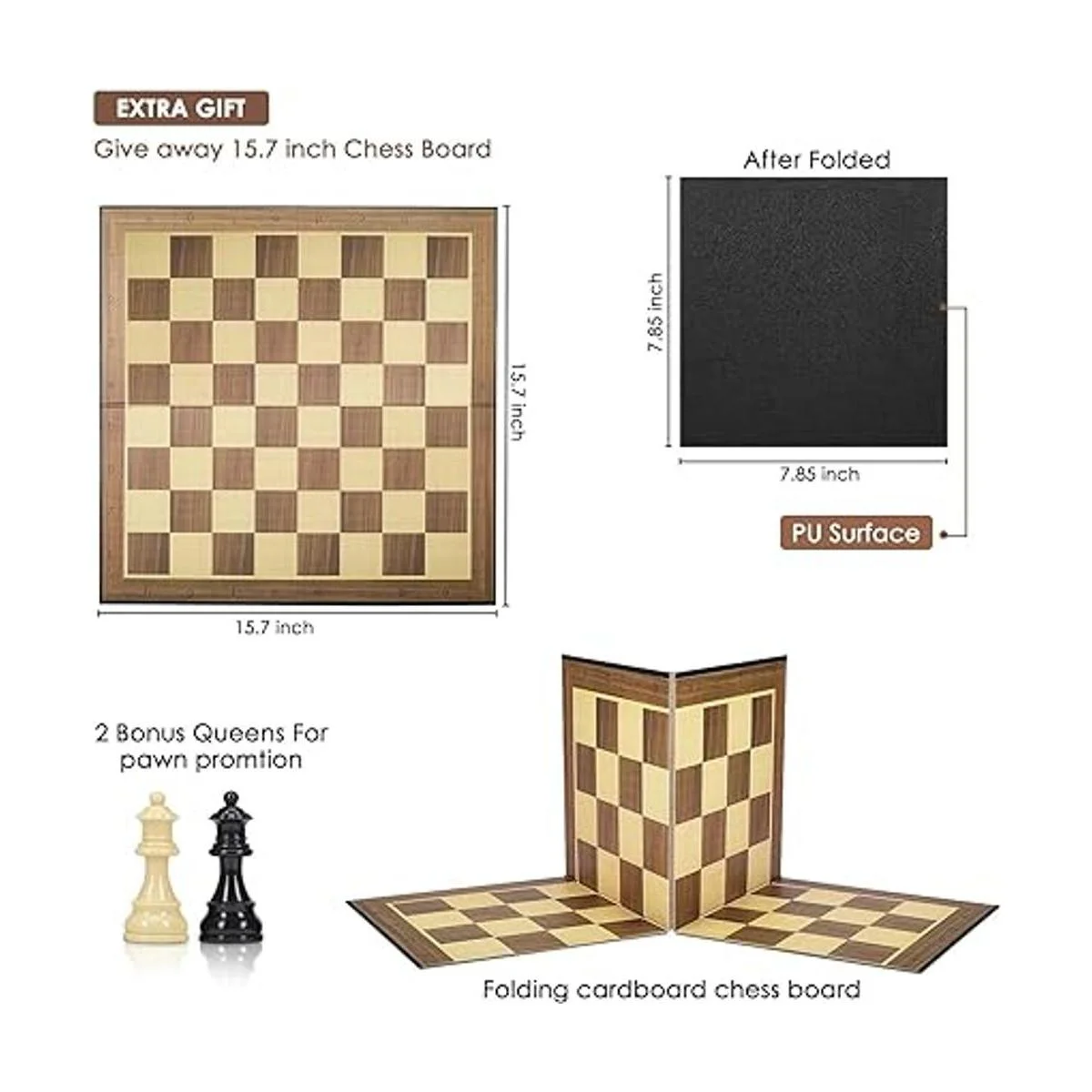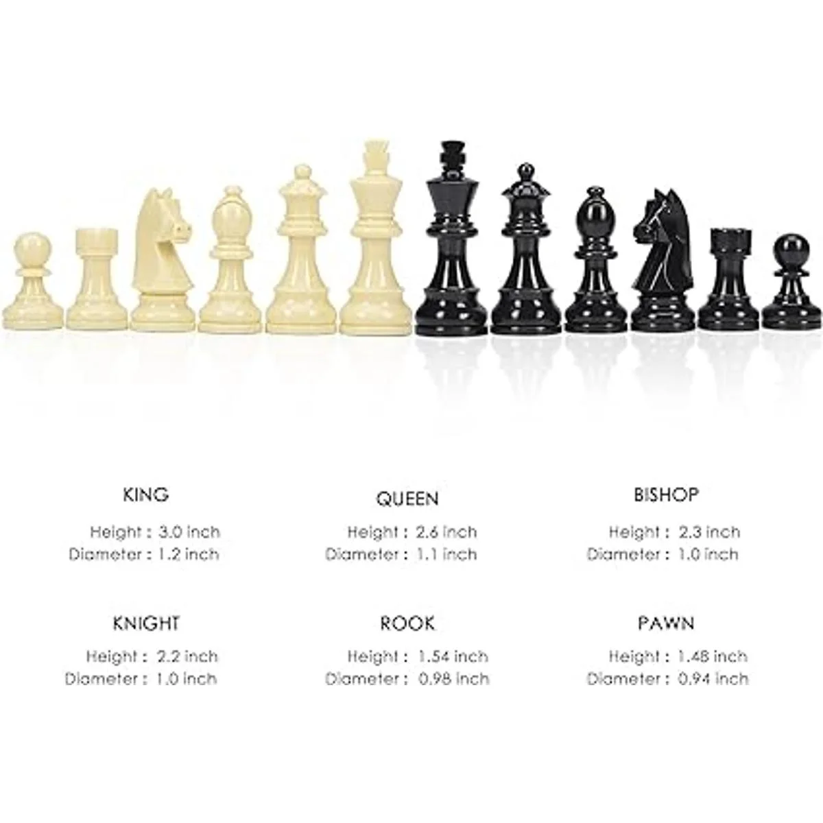 COMPLETE CHESSMEN SET There are 34 chess pieces including 3.0 kings and queens, rook, bishop, knight and pawns in proportion. 2 extra queens are added to the chessmen set as free accessories at your disposal