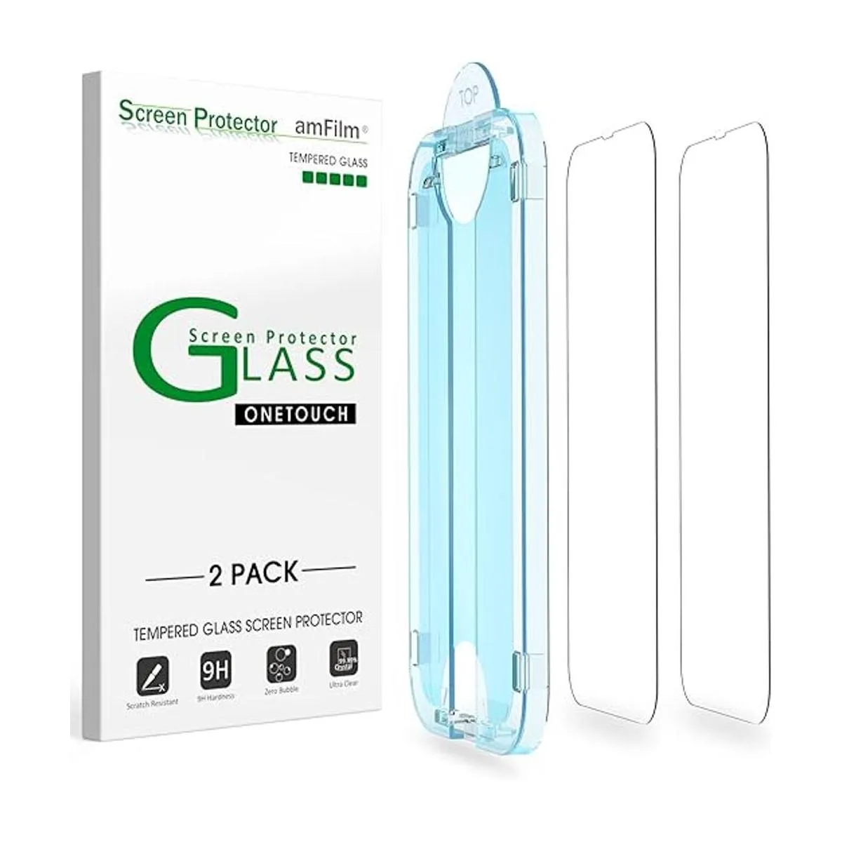 amFilm OneTouch Protector de pantalla de cristal compatible con iPhone 13iPhone 13 Pro de 6,1 pulgadas con kit de fácil instalación, compatible con fundas